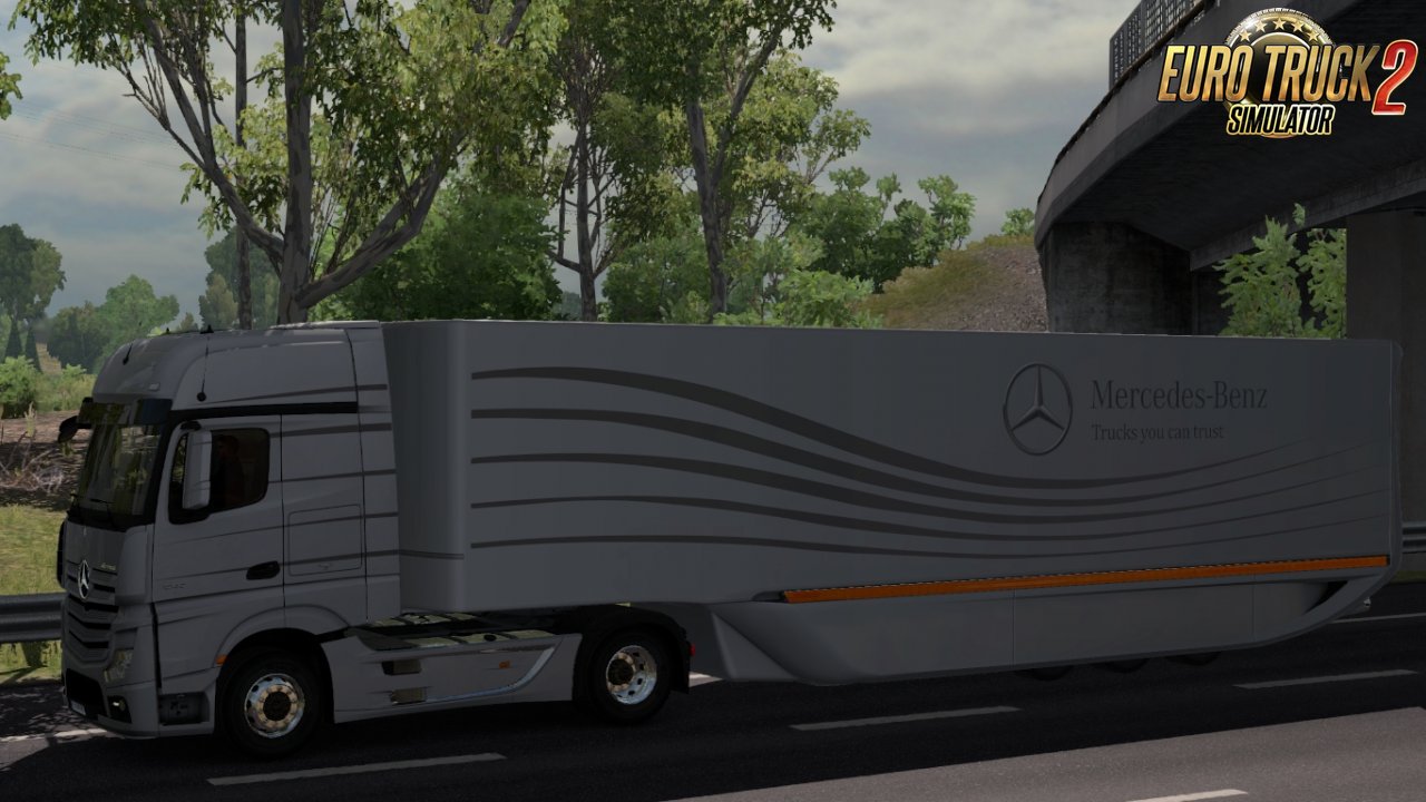 -JUST in Ownable Trailer - Nice and LowPoly Model - Full AO (2K) - A lot of Accessory - Custom Banners - 2 Variant with Combo Skin (Scania, Mercedes) - Trailer Cables - Coopling and DeCoopling Animation (Brace) - Correct COLL (with Advanced Coopling) - LowPoly Shadow - No FPS Drop - Clean Log + ... Tested on 1.33.x-1.34.x game version Credits: Animation, Convert: Amir Mahdavi 3D Model, Texture & Def: SCS Software, Amir Mahdavi Paintjob: Sagittariusjr, Amir Mahdavi Tester: Mehdi Anti, Sagittariusjr Refrence: Official image, squir, jekich1 Credits: Amir Mahdavi |