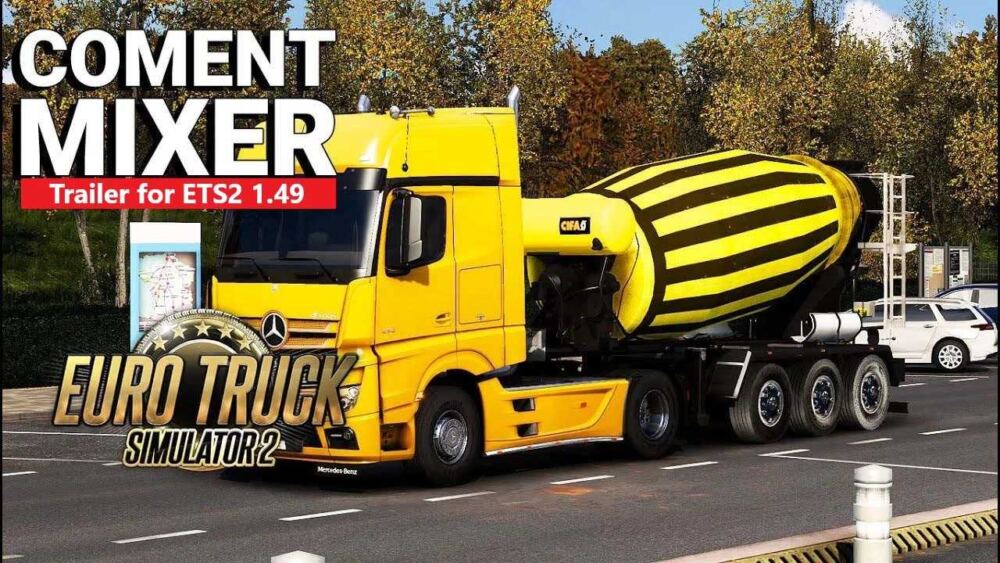 | This is a concrete mixer trailer that can be transported with all ETS 2 trucks and can be purchased at trailer dealers