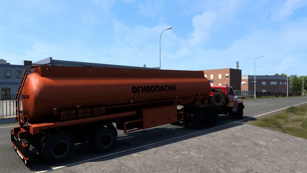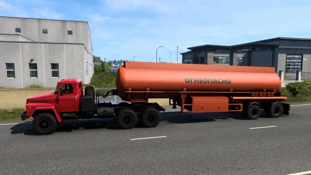 Changes: Added new skin Added new wheels Added support for 1.45 Mod features: 1 chassis 1 body 2 skins Cargoes: oil, gasoline, kerosene, diesel custom wheels tuning No support animation There are cables Credits: Oleg Strukov Credits: Oleg Strukov |