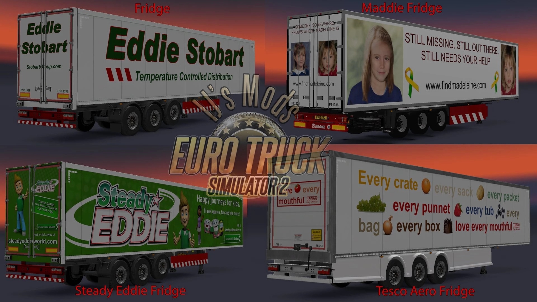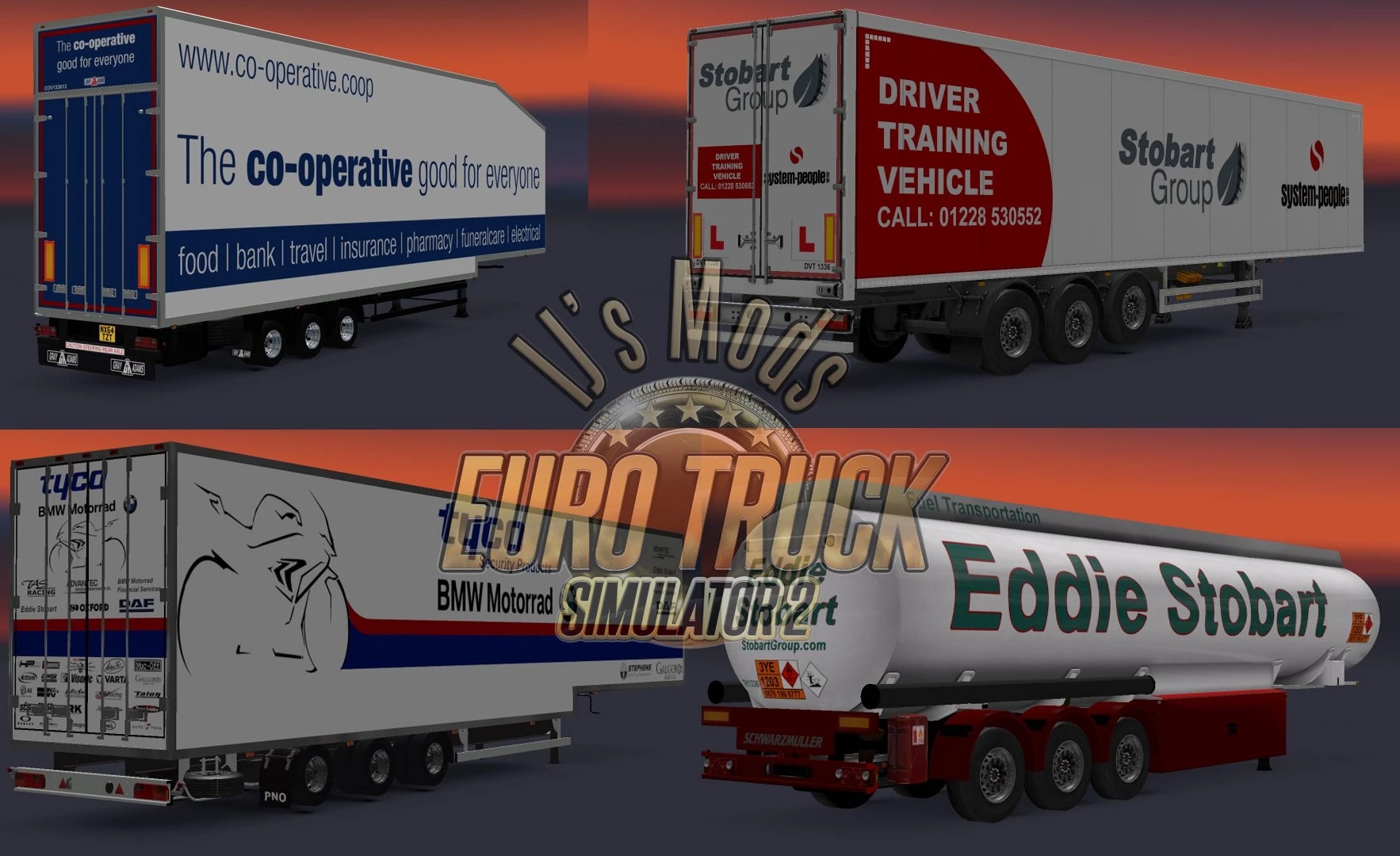 The Big Stobart Mod is a massive Stobart based mod that includes multiple standalone trailers and AI traffic combos with various Stobart liveries. All trailers will be seen in the AI traffic with appropriate truck combos. Version 17.2: update for v1.44 Credits: Mohegan13 Credits: Mohegan13 |