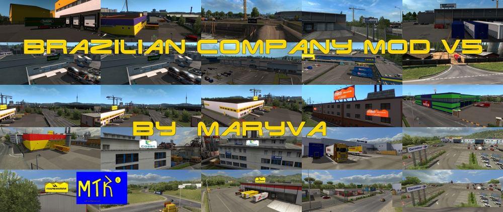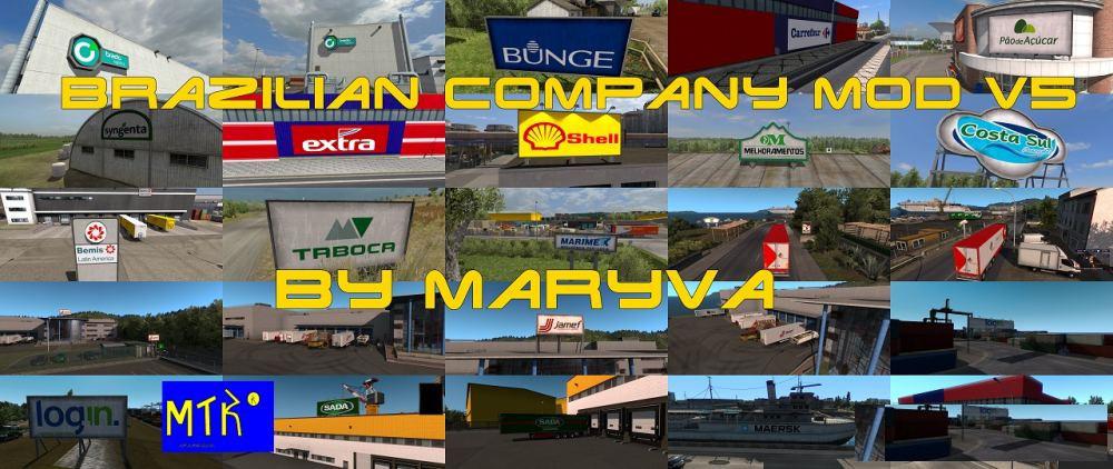 Mod modifies game companies to Brazilian or multinational companies in Brazil at DLC Road Black To The Sea without modifying the original companies there. Tested at version 1.36.x Tested on multiple maps: Original and DLCs. Promods 2.43 EAA (Except standalone companies) RBR Map (Except standalone companies) Eldorado Map (Except standalone companies) RC Map (Traffic only and European part) Credits: Tamiel, Satan1999, Maryva |