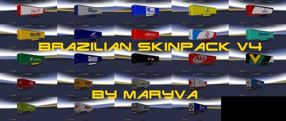 This mod changes the game for companies in the Brazilian and multinational companies in Brazil. Tested on version 1.32.x. Classic Company: Brazilian Transport BCP Transporte Bendini EuroAcres JSL EuroGoodies Sedex FCP Petrobras ITCC Aqces Transportes KAAFOR Negrelli Transportes LkwLog SADA NBFC Ipiranga Posped Ritmo Logistica Sanbuilders Axon Transportes Sellplan Reiter Log Transportes Scout Cars Horizonte Logística e Transportes Stokes Coopercarga Tradeux Itapemirim Cargas Trameri TNT Mercurio Transinet Braspress Treeet Tora Transportes Industriais Ltda. WGCC Shell Quarry DLC Scandinavia: Company North: Brazilian Transport Agronord Terra Nova Transportes Aria Treméa Transportes BHV Tegma Logística Bjork Painel Transportes Container Port Santos Brasil Logística DrekkarTrans ID Logística GNT Expresso Mirassol IKA Bohag Godoy & Batistella Operador Logístico Konstnorr Multipla Logistica e Transportes Ms Stein Nordic Crown Tazlu Transportes Nordic Stenbrott Norrfood TRD Transportes Norrsken Salvador Operador Logístico Ns Chemicals Transportes Transdupla Ns Oil Niquini Transportes Polar Fish Maynard Transportes Polaris Lines Maroni Transportes Renar Logistik SAT LOG Transportes SAG & TRE Sawmill Belmok Transportes Scania Scania Vitas Power Transnovag Transportes Volvo Veneto Transportes VPC Quick Logística DLC France: Company France: Brazilian Transport Batisse Ouro Verde Transportes BHB Raffinerie RG Log Transportes Boisserie Eldorado Brasil Chimi Time Express Logística e Transportes Dans Le Jardin Marvel Transportes FLE Grupo Ambipar Gallia Ferries Marimex Inteligencia Portuária Globeur Eureka Transportes Urgentes Gomme Du Monde CargoLift Transportes Huilant Gafor Logística Lisette Logistic Luft Logística MVM Carrière Transporte Excelsior Nos Páturages Rio Lopes Transportes Nucleon Transporte Excelsior Renault Renault Port De Conteneur Login Logística Intermodal Subse Cootravale Transportes Voitureux TSV Transportes Rápidos Wilnet Transport Jamef Transportes DLC Italia: Brazilian Transport AAA Kobrasol Transportes e Logística AAC Usifast Logística ACI Transduarte Transportes Cantiere Navale Tempus Cargas CargoTras ALL América Latina Logística CDE SRL Expresso Nepomuceno Cesare Smar VVLog – Via Varejo Logística CMT Graneleiro Transportes Rodoviários CNP Cesari Transportes Costruzi Hal TransPrimo Transportes Eolo Lines Santos Brasil Logística Exomar Fontanella Transportes Fattoria Food Bellaver Transportes Fui Spa Binotto Transportes Libellula Embrisa Transportes Plac OTD Brasil PP Chimica TPN – Transportadora Primeira do Nordeste SAL Dachery Transportes Spinelli Jadimo Transportes TE Logística Golden Cargo Transportes Tesore Gust Martin Brower Transportes Trans Mediterraneo ER – Expresso Rodominas Other Companys (TANKS): ACC Almix Concreto BCP Cotrag Transportes BHB Raffinerie ALP Transportes CargoTras União Transportes e Logística CNP Cesari Transportes Exomar Atrevida Transportes Fattoria TransKompa Transportes ITCC Aqces Transportes LkwLog Trelsa Transportes Posped Contatto Transportes PP Chimica Ultracargo Transportes SNP TQuim Transportes Stokes Coopercarga Logística TE Logística Anamar Transportes Tradeux ALE Combustíveis Transinet Transal – Transportadora Salvan Trans Mediterraneo Raízen Transportes Wilnet Transport Salvador Operador Logístico Credits: Maryva |
