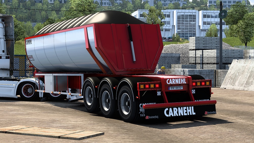 - Short/Long Trailer - Custom load from every mine/construction site - Custom leg animations - Gravel & asphalt cover as top, so you can choose - black and painted frames - ledon and slot taillights - mudflap you can take of - And its skinnable - And of course you can change to you own color Credits: JS Truckstyling |