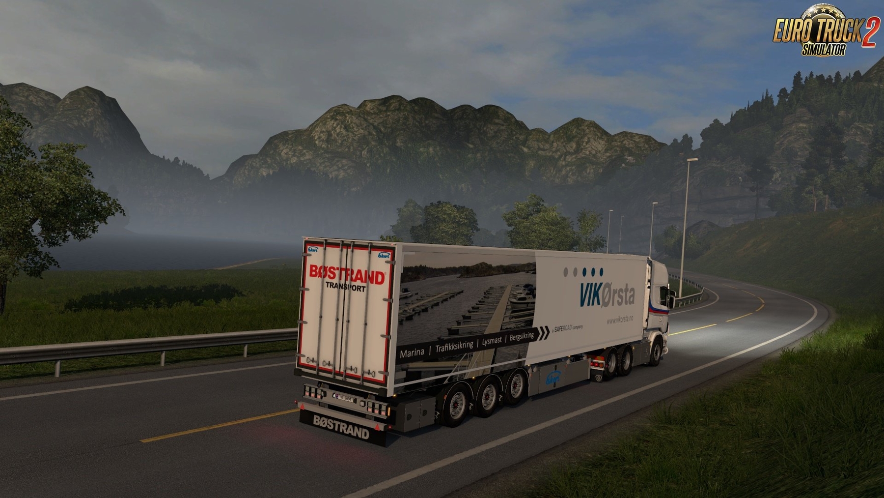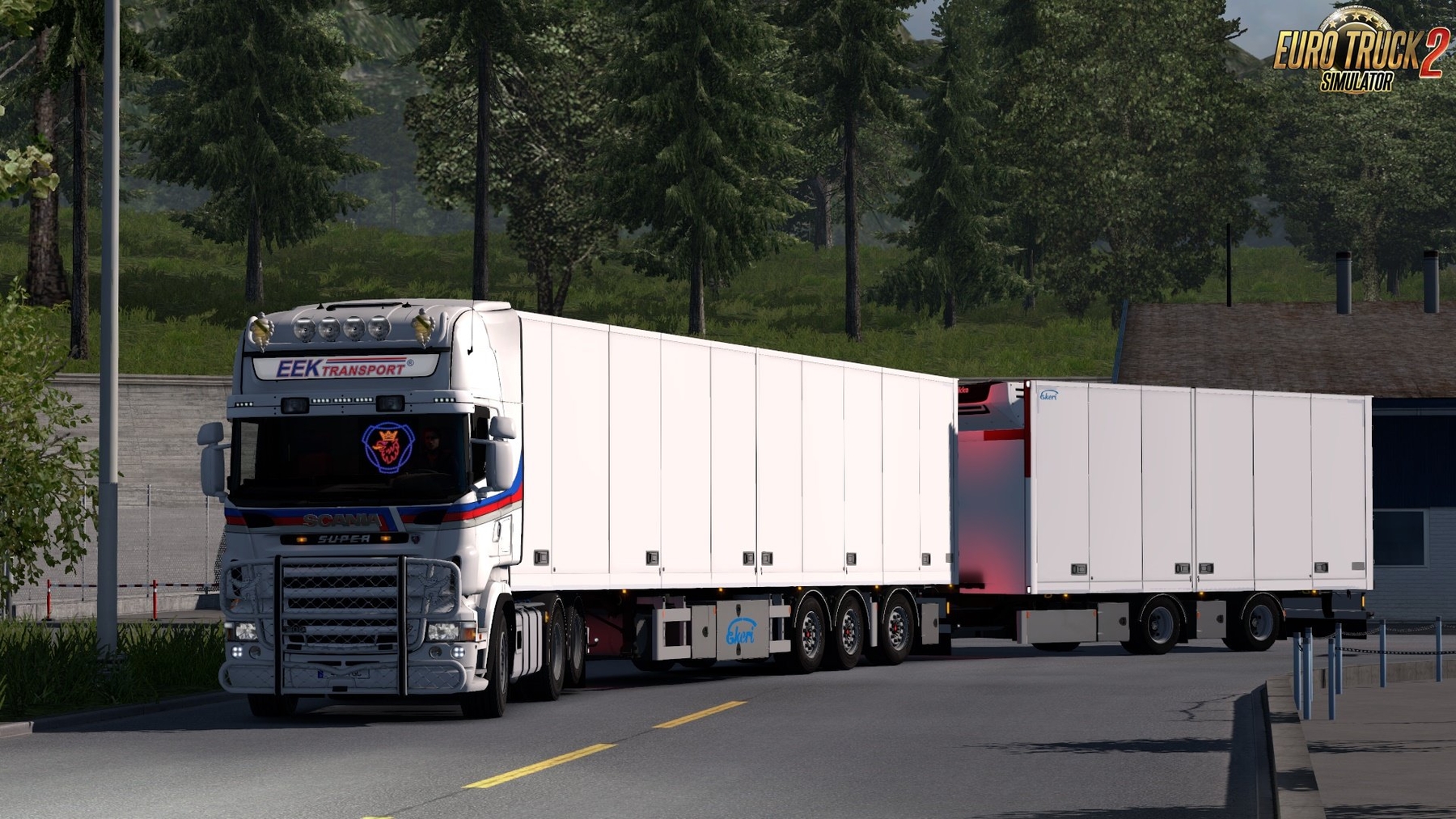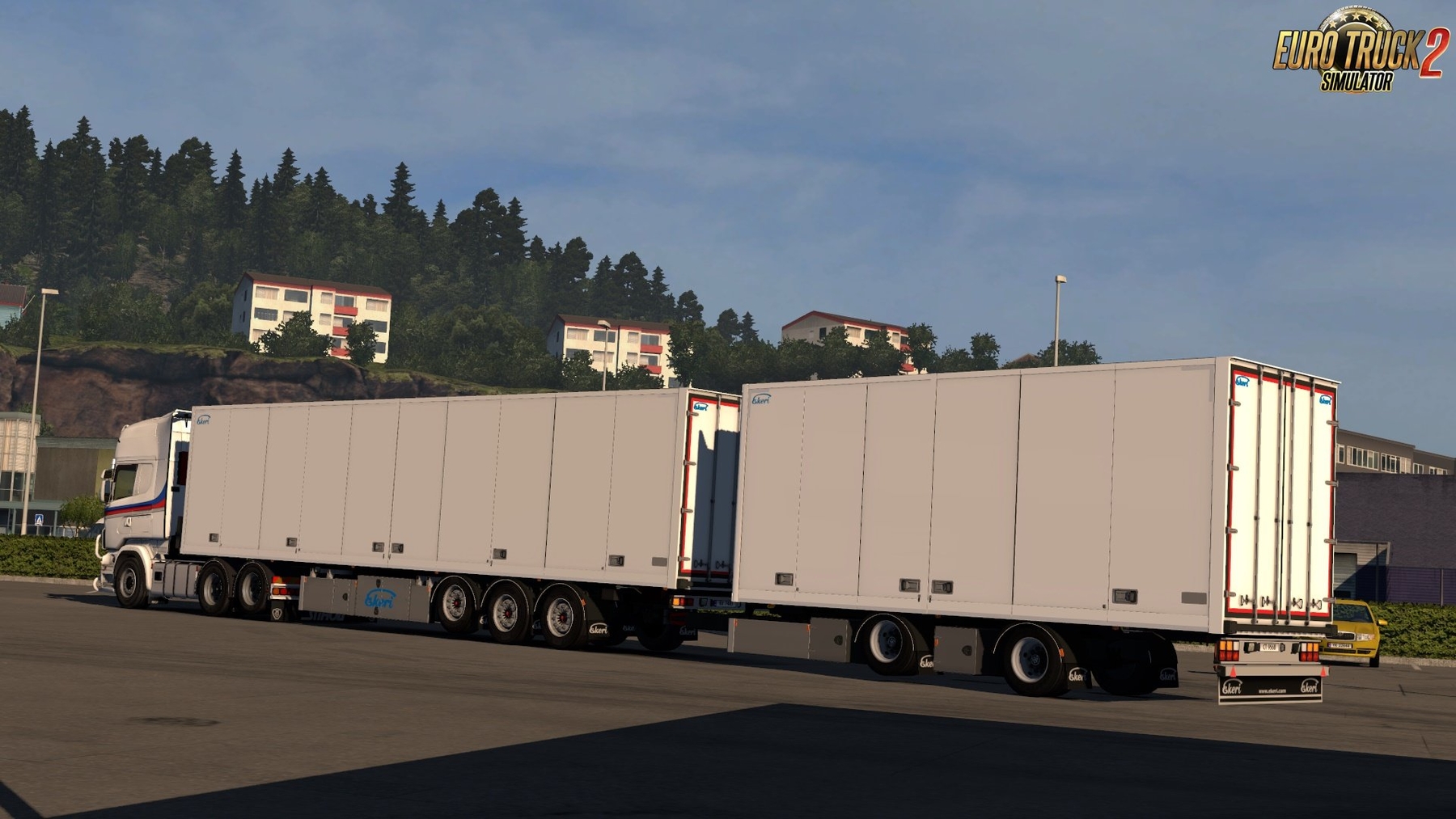 There is selection of variants: -standard, -steeraxle, -citytrailer, -tail-lift, -cooler, -different lights, -doubles, -different side covers, -real company skins ... *Main mod restricts doubles only in scandinavia, same as vanilla game! This pack includes: -15 variants of the Ekeri trailers -Lumikko coolers -Real company skins -Double trailers -own wheels -Standalone -Advanced coupling -Trailer lift axle -Company paintjob system -Animated braces New Changes in v1.1: -Two variants of the STEP-FRAME SEMI-TRAILERS added -New skins -some fixes Credits: Kast, Fabry85, Abasstreppas, 50keda |