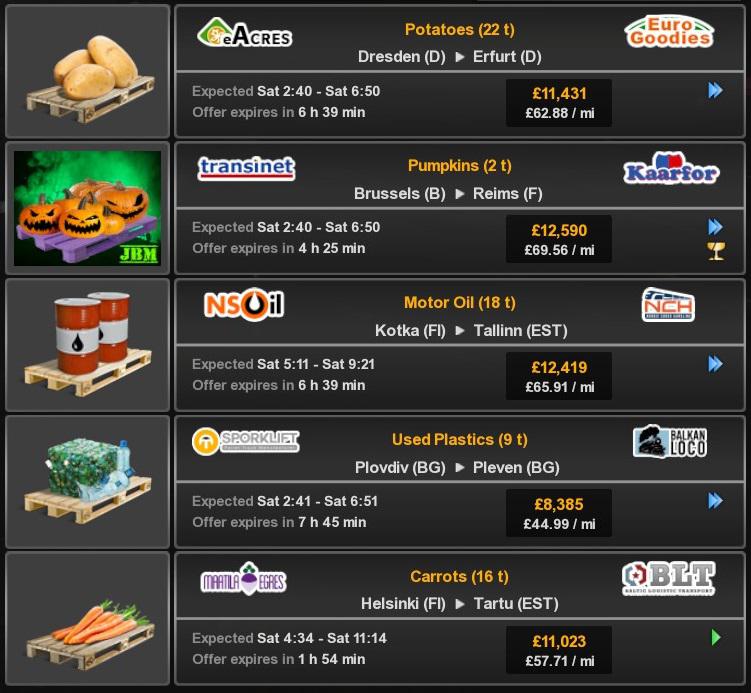 Cargoes will appear in the Cargo Market when using your own curtainside or dry van trailer, in the Freight Market in default trailers, and in Quick Jobs. V1.0 of this mod contains the following 16 cargoes in varying weights: - Candy Corn - Blood Candles - Pile O' Bones - Sinister Scarecrows - Pumpkins* - Jars of Eyeballs - Halloween Costumes - Toffee Apples - Creepy Candy - Bubbling Cauldrons - Skulls - Halloween Decorations - Chilled Entrails** - Creaky Coffins - Scary Masks - Ghost Hunting Kits *Pumpkins can be easily damaged in transit. For that reason, they are categorised as fragile. Don't bruise them! **Chilled Entrails requires an insulated or refrigerated trailer. Cargoes can be transported to and from all logistics companies. Candy cargoes, costumes, masks, pumpkins, decorations and toffee appples can be delivered to all supermarkets and stores. PLEASE REMEMBER: IF CARGOES AREN'T SHOWING IN THE MARKETS, TRY SLEEPING ONCE OR TWICE, THEN SEARCH AGAIN! Tested and working with error-free log in game version 1.38.x with all official map DLCs. Credits: JBM |
