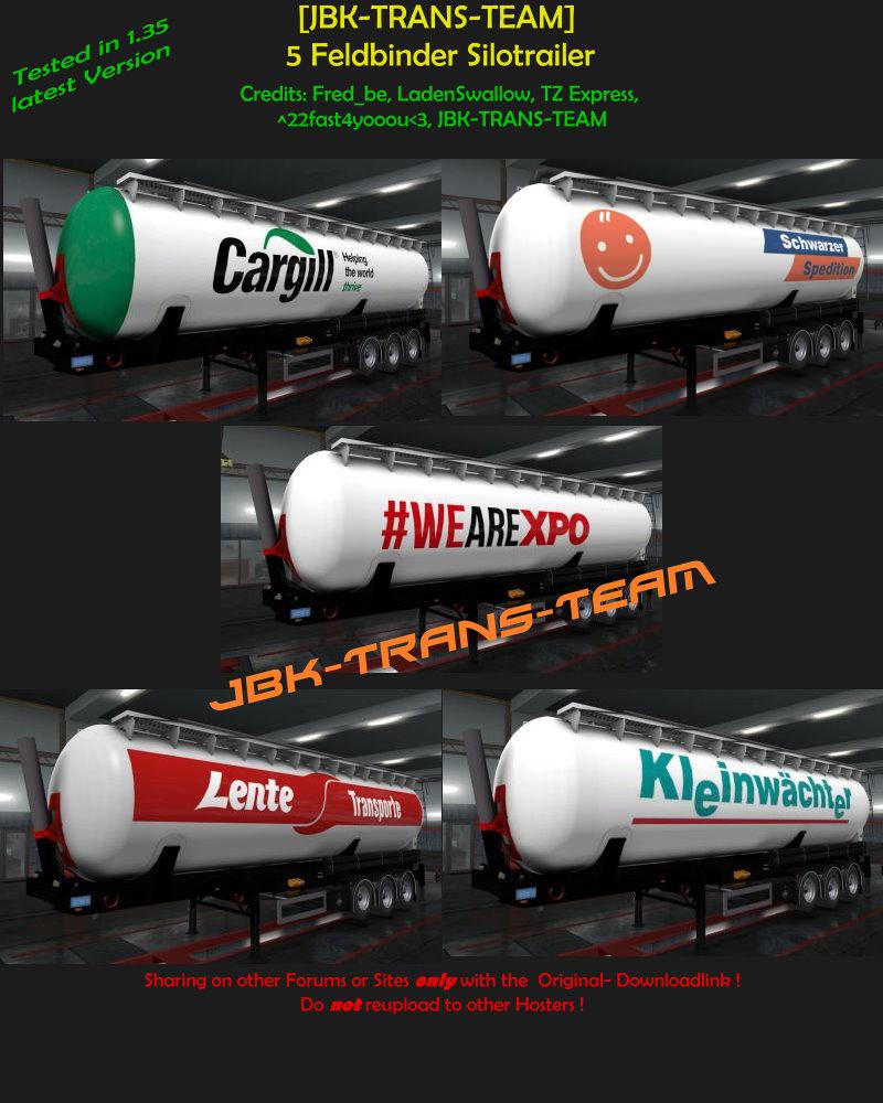 Mod JBK FFB 5 SILOTRAILER 1.35 for EURO TRUCK SIMULATOR 2 Bought in property For the game version 1.35 Authors: JBK-TRANS-TEAM, Fred_be, LadenSwallow, TZ Express, ^ 22fast4yooou Credits: JBK-TRANS-TEAM |