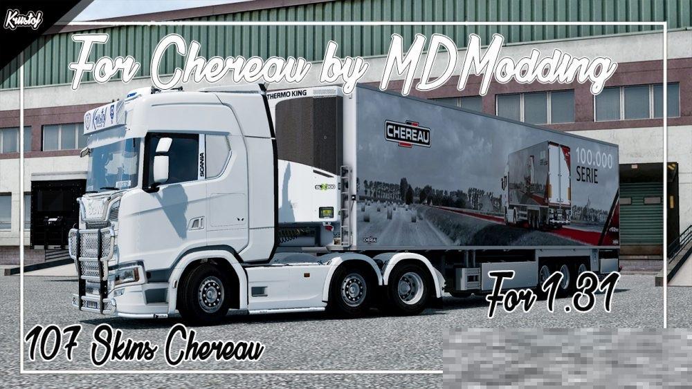 Hi. This is a Pack V3 for new trailer chereau by MdModding Only Skins 107 Skins FR Many skin truck FR Installation: 1-You must install last trailer by mdmodding Here http://sharemods.com/f1zkb981vjzs/Chereau_V1.31.zip.html 2-Install my pack Skin variant in différents cargo , Choose your skin in fret Credits: Kriistof Credits: Kriistof |