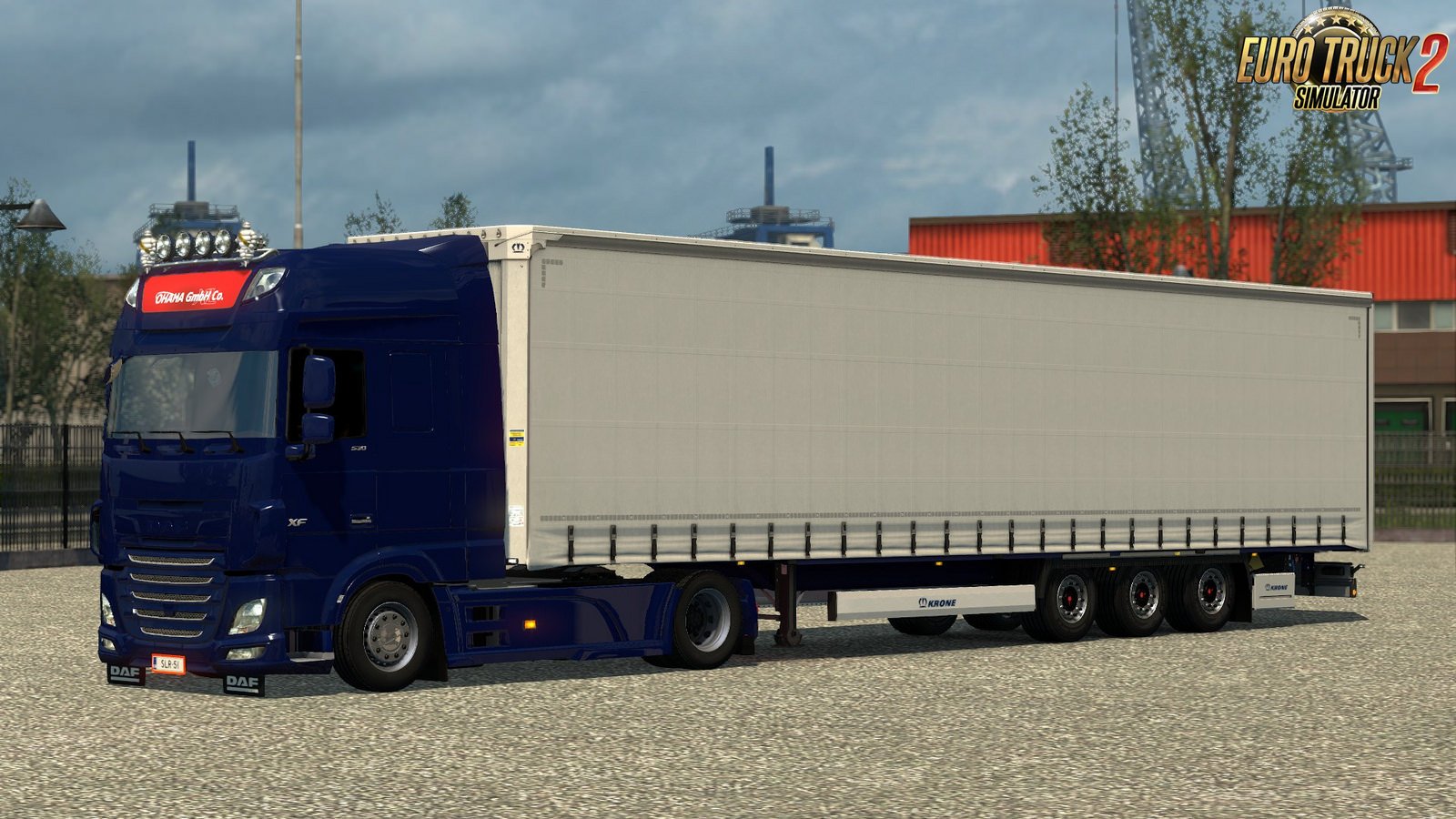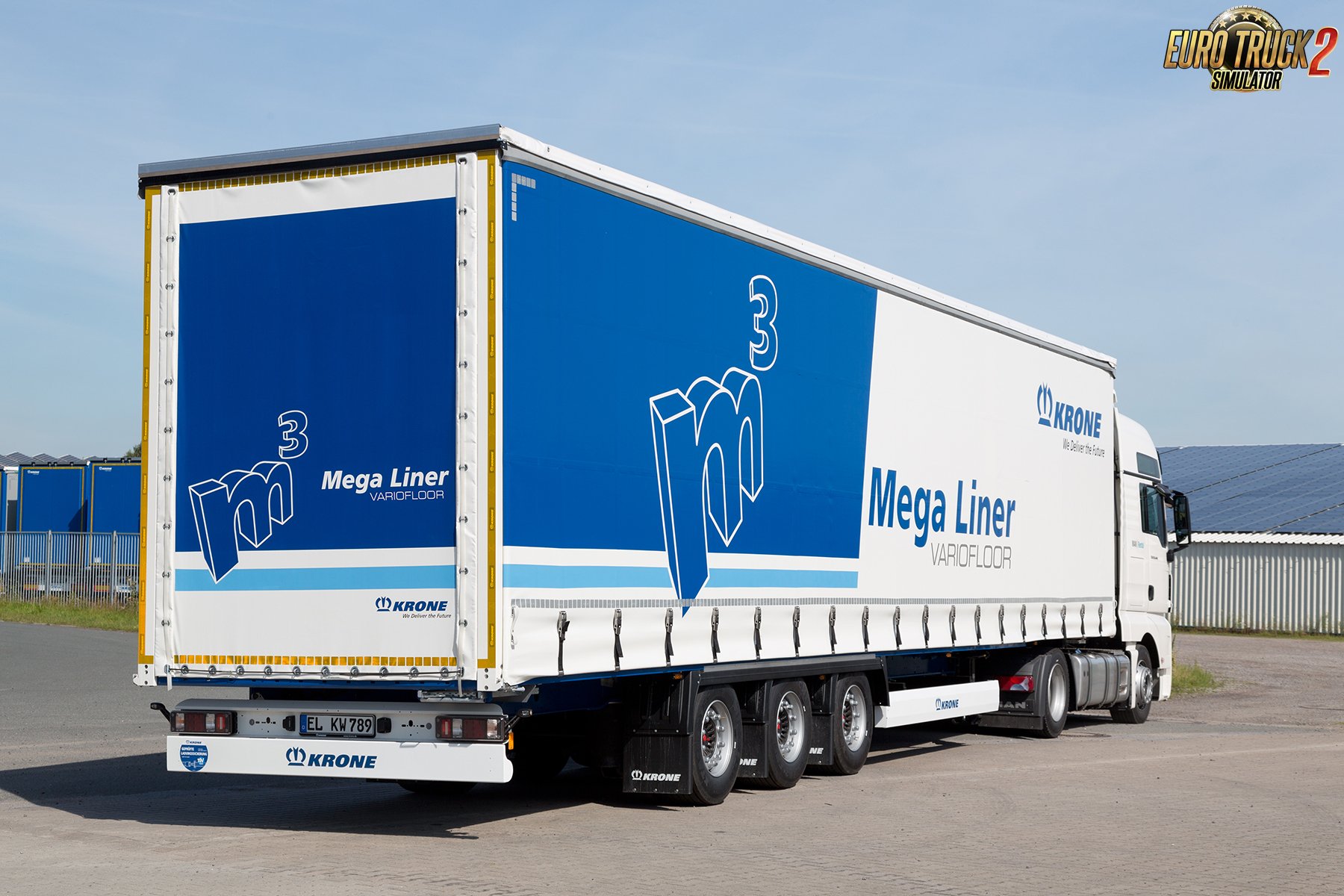 This mod adds in a Krone Mega Liner trailer intended to be used with low deck trucks. New update: - Fixed wheel positions Features: - Advanced trailer coupling (coupling height ~1050 mm, neck height 950 mm) - Paint job support-Brace animation - Trailer cables Compatibility: Tested in Euro Truck Simulator 2 v1.31.x DOES NOT WORK IN OLDER VERSIONS! Credits: LoaderSaints |