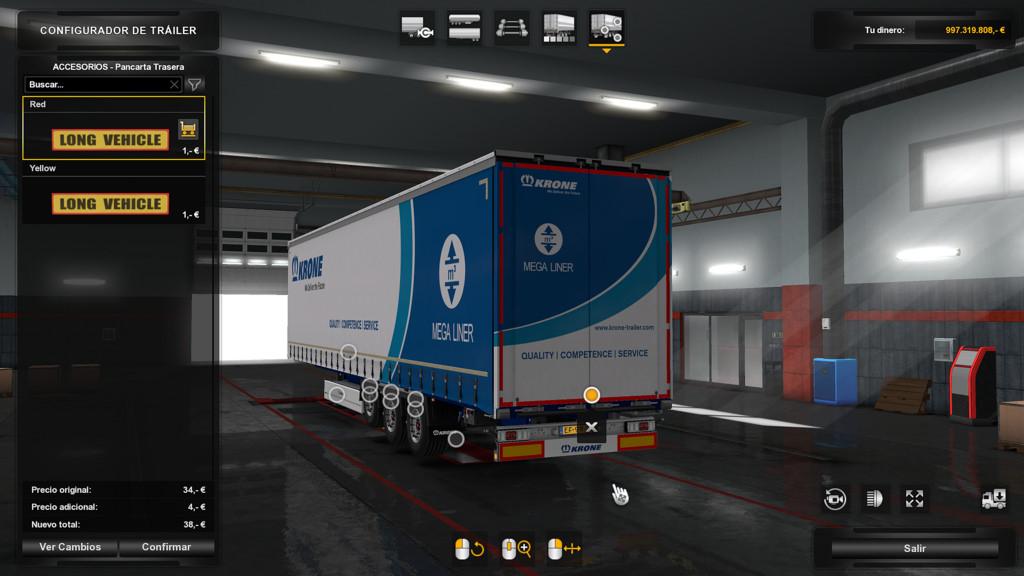 Changelog v1.0 -Purchasable and job market working. -2 versions: 3 and 2 axle. -Custom parts. -3 Number plates(SCS plate, from skin and from texture). -2 side reflective stripes(Yellow and white). -2 rear reflective stripe(Red and yellow). -1 rear reflective banner. -2 types of rear boxes. -2 types of front boxes(Only 1 for 2 axle version). -Saf wheels from abasstreppas with 3 hubs(Red, black and grey). -Custom paintjobs(4 colors). If something its not working contact me but it was tested in a clean profile 1.32. Enjoy! Credits: Sogard3. Abasstreppas (Wheels and paintable chassis frame). Axelrol (Plastic box model, license plate model and flares). SCS (Base model from Profiliner). Credits: Sogard3 |