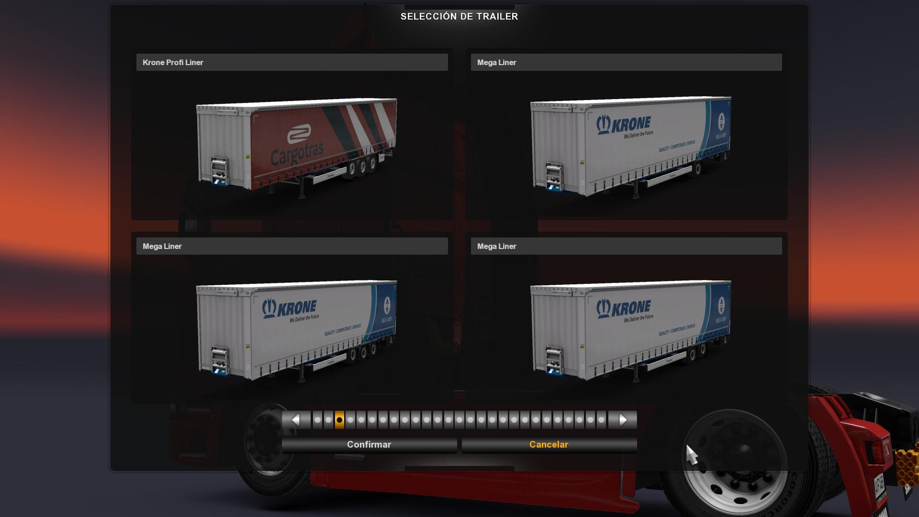 I want to present you the Krone MegaLiner 2017 Addon for Krone DLC. Changelog v1.4: - Added Multos body. - Added ADR plates. - Added Oval stickers. - Added long mudflaps. - New template with correct proportions(Psd, png and dds inside zip file). - Added more skins. - SCS skins removed(They dont fit anymore with the new template). TO USE THIS MOD YOU NEED THE KRONE DLC, WITHOUT IT THE GAME WILL CRASH. Sogard3. Abasstreppas (Wheels). Axelrol (License plate mode,flares & round taillights). SCS (Base model from Profiliner DLC). Smyro (Skins). R3AP3R (Skins). schwedentrucker_09 (Skins). vad&k (Manifest file). Donovan (Adjusted brightness on skin number plates). Credits: Sogard3 |