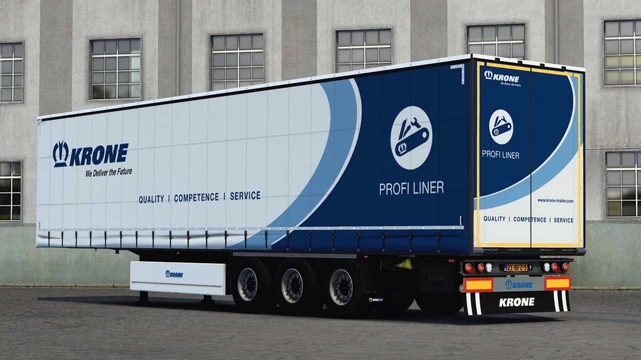 Standalone Krone Profiliner trailer with 4K AO bake One variant of chassis (I will add more in the future) One variant of body All new textures of reflective stripes All new models of palletbox, side-rails with 4K AO bake All new models of reflective stripes Custom mudflaps (with changeable texture & with template) New templates for trailer Custom trailer wheels (Maxion 120) Mods or DLCs you need: You don’t need any other mod This time you need KRONE DLC to find the trailer in trailer dealer (until the next update I will try to remove the mod’s dependency on krone dlc) My trailer is fully compatible with Jasper’s Wheel pack, if you own it, you can use it on my trailer Mario00774 - Rework & adaptation for 1.40, new models and future updates -Axelrol & his team - original mod -Defiant70 - Photos and betatest of the mod -Abasstreppas - Custom trailer wheels -DaStig - Original skinpack and Kondor - Skin rework Credits: Mario00774 |