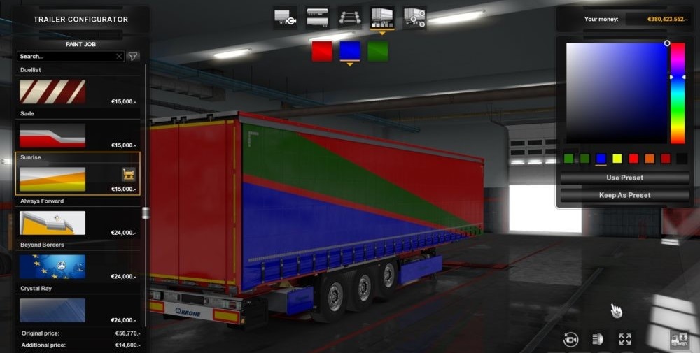 Change.log in V1.1 – added full support of SCS skins – added txt file for skinners with acc_list KRONE TRAILER DLC REQUIRED!!!! This mod adds something SCS missed out (painted parts with Krone logos) The mod adds extra options for Krone Ownable trailers Credits: Azorax Modding |