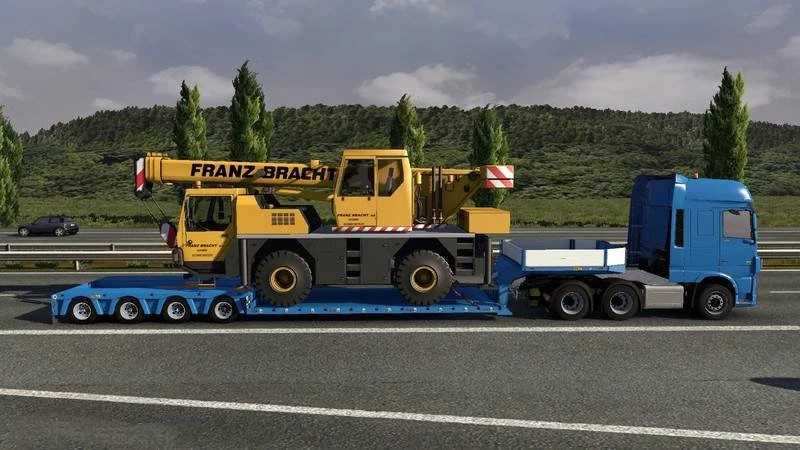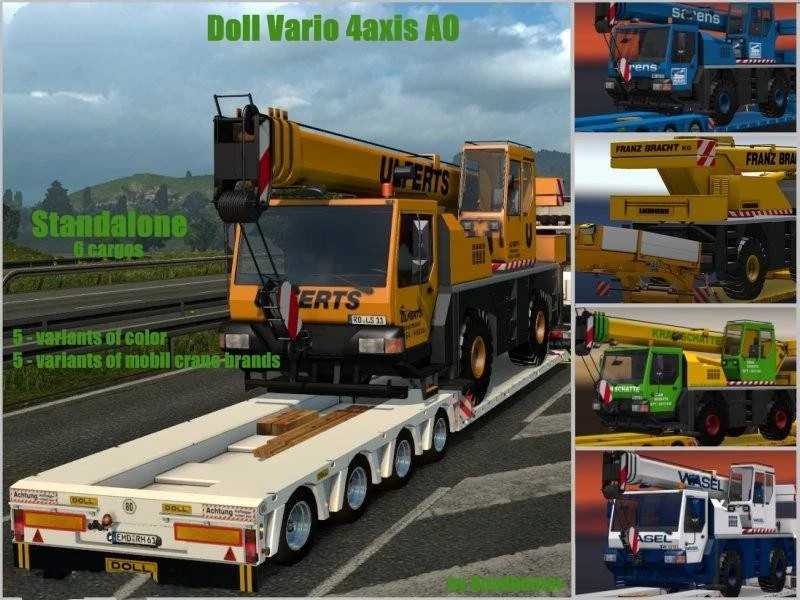 5 Variants of color: red, white, yellow, gray, blue Trailer is Standalone Two Cargo – empty and mobile Crane Cargo : “Doll Vario 4Achs Leerruecktransport” Weight: 2 tons Cargo: “Liebherr LTM 1030” Weight: 30 tons Credits Roadhunter, Ventures, Saschii Credits: Roadhunter, Ventures, Saschii |
