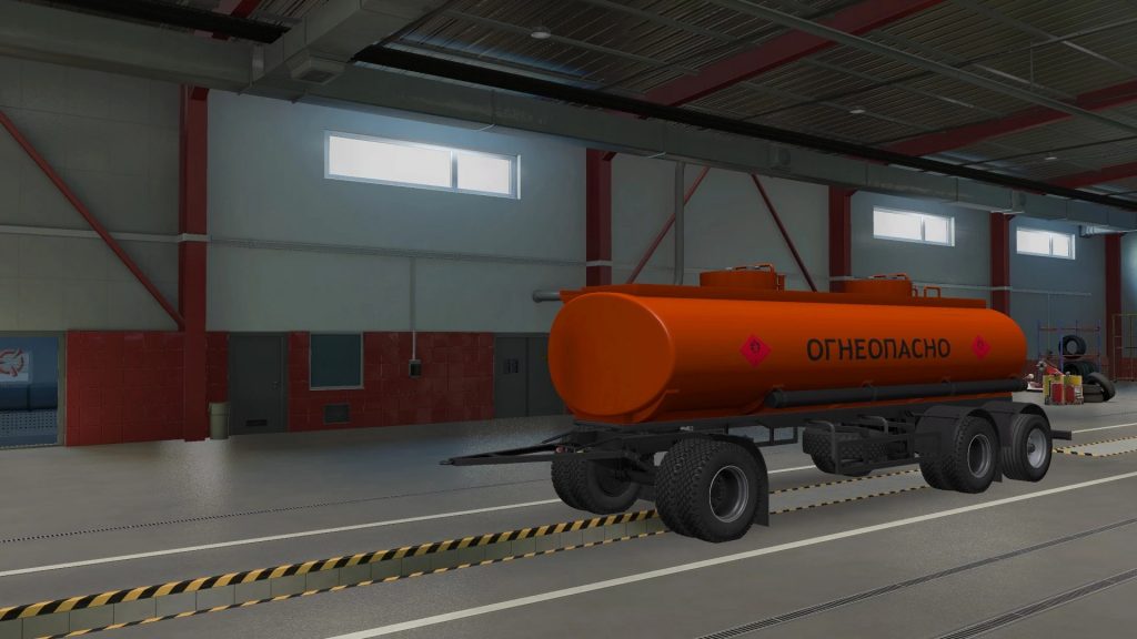 Changes: Updates for 1.43 The mod adds domestic NefAZ trailers available for purchase to the ETS2 simulator. As a result of the development of the mod, 2 types of chassis were implemented (2-axles and 3-axles with a front rotary axle), various modifications were added: curtain, van, flatbed, fuel tank and container carrier, as well as some tuning (3 types of tires, 3 types disks, various mudguards), loads for each modification are registered on the cargo exchange. Credits: AJEHA |