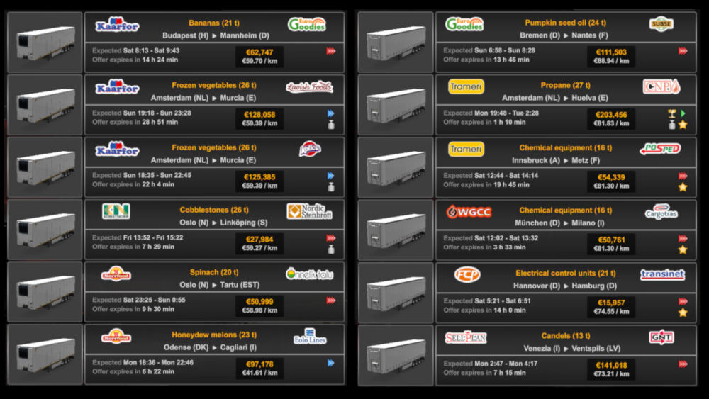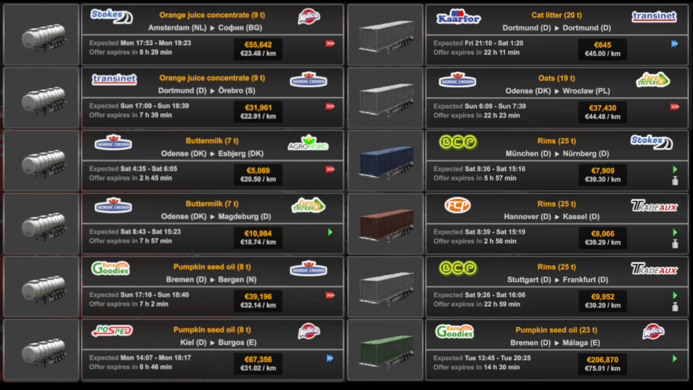 A simple cargo mod for ETS2, which adds over 70 new freights for different trailer types. The mod is currently translated to the following languages: Bulgarian, German, French, Hungarian, Polish, Portuguese & Brazilian Portuguese, Spanish and Turkish Changelog – Version 1.2: – Added 20 new freights – Added french and spanish translations (thanks to James LeBavard) Credits: JPGames |