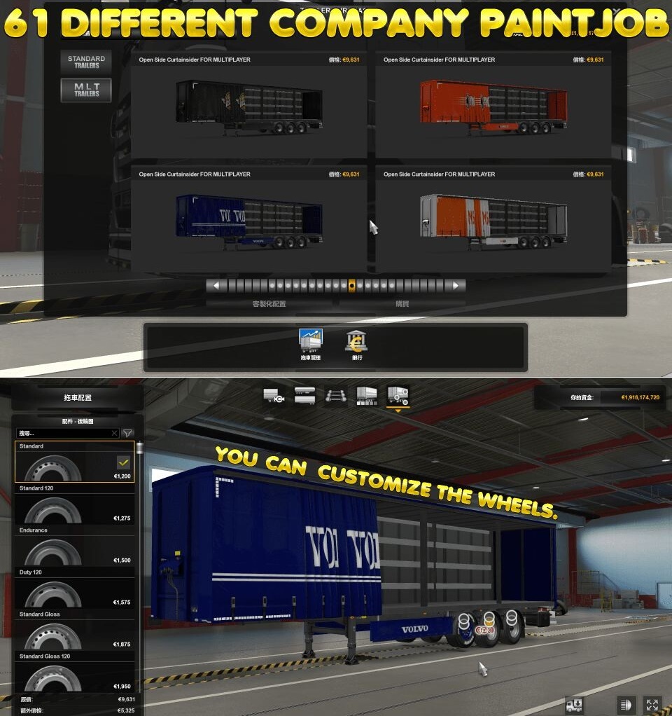 [EN] ►Buy single player then save the game and enter the multiplayer. ►An open side trailer, which is in the game files but cannot be used, can be ownership. ►I’ve tried it in multiplayer and it’s visible by everyone else. ►I used it for a long time and did not ban. ►61 different companies paintjob. Credits: MLT Credits: MLT |