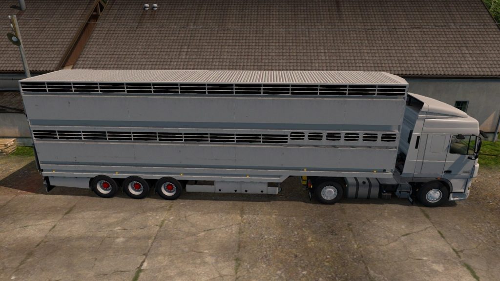 The mod allows you to purchase a semi-trailer for transporting livestock. HCT 3-2-3 coupling option (does not work in TruckersMP); The possibility of painting the semi-trailer; The possibility of tuning wheels; There is a cargo exchange (cows) Supported in Convoy mode Changes: Update for patch 1.45.x Credits: Wall_Power Credits: Wall_Power |