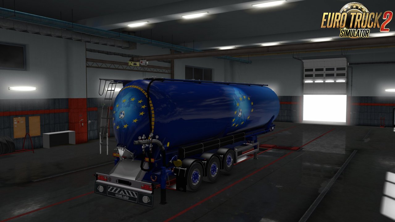 New update v1.01: - Fixed missing default paintjob at trailer dealer - Rear reflektive panels in standard size - UV mapping of some small parts tweaked This is the first release of an owned Feldbinder silo trailer. It is based on Fred_be's and RommiTZ's silo trailer, but realized as an independent, stand-alone modification. Features of the initial release: - stand-alone, ownable-only trailer - chassis configurations liftable/non-liftable - compatibility with SCS accessories (wheels, mudflaps) - new accessories for side+back reflective stripes in different colors - AO baking of frame+body - new paint system allows separate customizable colors for frame and body - template for skinning - new body_type - freight market offers freight like cement, sand et al. for this body_type - SCS company paintjobs Paint Jobs for RL companies will be released as separate mod packages: Skinpack 1 contains: - Franz Fischer (D) - Kleinwächter (D) - Schmidt Heilbronn (D) - Sievert Handel Transporte (D) - Sitra (B) - TIP Tanker Services (NL) - Woodside Haulage Services (GB) At the moment the Skinpack 1 contains only the trailer skins, but I will probably add matching truck skins later. Skinpack 1: https://sharemods.com/vg2ivrha62uv/Feldbinder_KIP_owned_-_Skinpack_1.scs.html Tested on 1.34.x game version Credits: TZ_Express, Fred_be - original trailer model, animations and textures LadenSwallow - conversion to owned trailer, accessories, AO baking, template, skins, ui ^22fast4yooou<3 - freight, texture details rework, test driver Credits: LadenSwallow |
