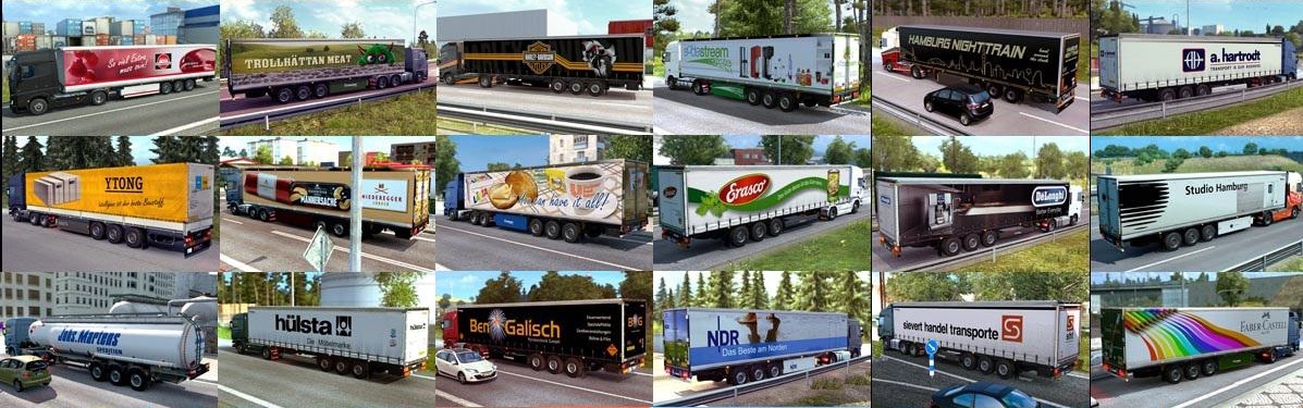 Pack contains 545 trailers. - 34 new trailers - Some old trailers redesigned - Revised freight Cable connections are still NOT integrated! Who wants to avoid the appearance of warning messages in gamelog.txt (which does not affect the game in any way), sets the "Gameplay" - "Semi-trailer cable" "NO" in the settings. Credits: hh-penguin |