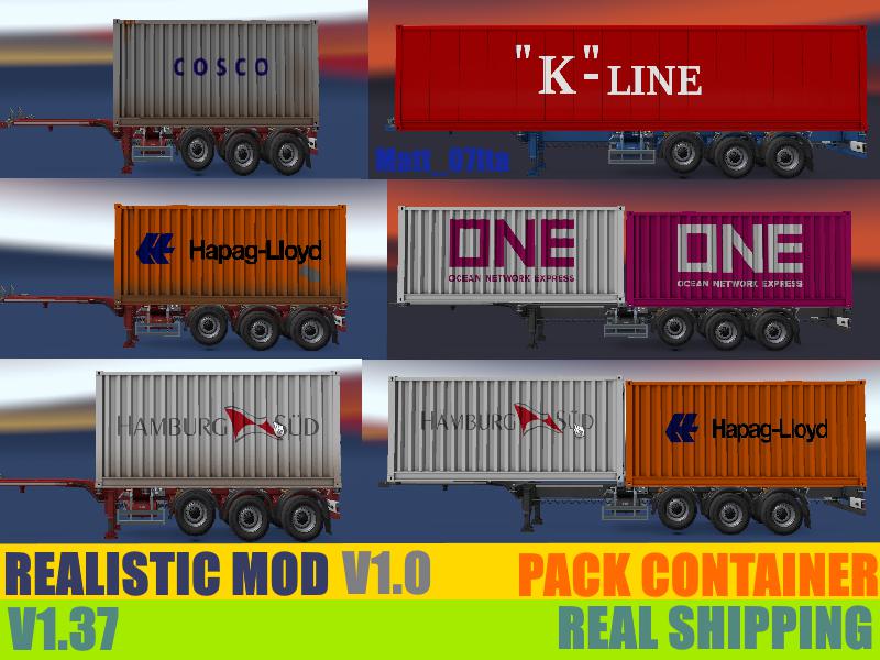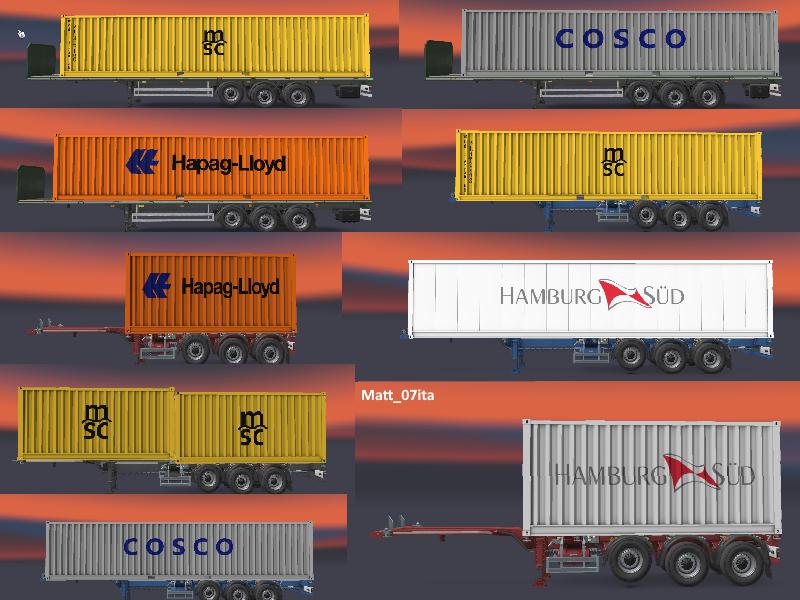Matt_07ita is back, and for a while since I was not posting mods, I hope you have not worried. Today I am back with a new pack, this is a real mod. Usually I create mega packs but this is only a pack because it will come updated to version 1.2 I CREATED THIS MOD TO MAKE THE FIELD OF CONTAINERS AND TRANSPORT IN ETS2 LOOK MUCH MORE REAL !!! This mod is for container ships by scs.It was a little complicated to create this mod because being the first time I had to test it many times. Now I will list some companies: - hamburg-south 4 - hapag lioyd 3 - msc 3 - one 2 - k-line 1 - cosco 2 I CAN REVEAL YOU THAT MANY OTHER CONTAINERS WILL BE ADDED IN THE NEXT VERSION. Being very demanding these packages will not always come out but one per week is insured !!! Credits: Matt_07ita Credits: Matt_07ita |