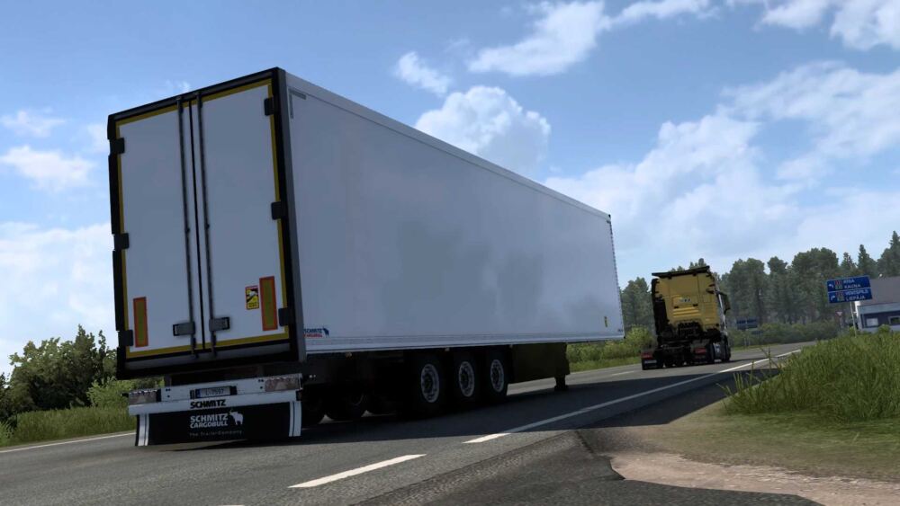 This is an addon to schmitz by JUseeTV!! The mod includes: Chiller selection ANGLES MORTS stickers Selection of license plates Trailer Requires mods: 1. Schmitz S.KO by JUseeTV & obelihnio 2. abasstreppas trailer wheel pack Wheels required: Rims: 19.5 Tires: 435/50R19.5 Credits: Nokalod/X_GamingPL |