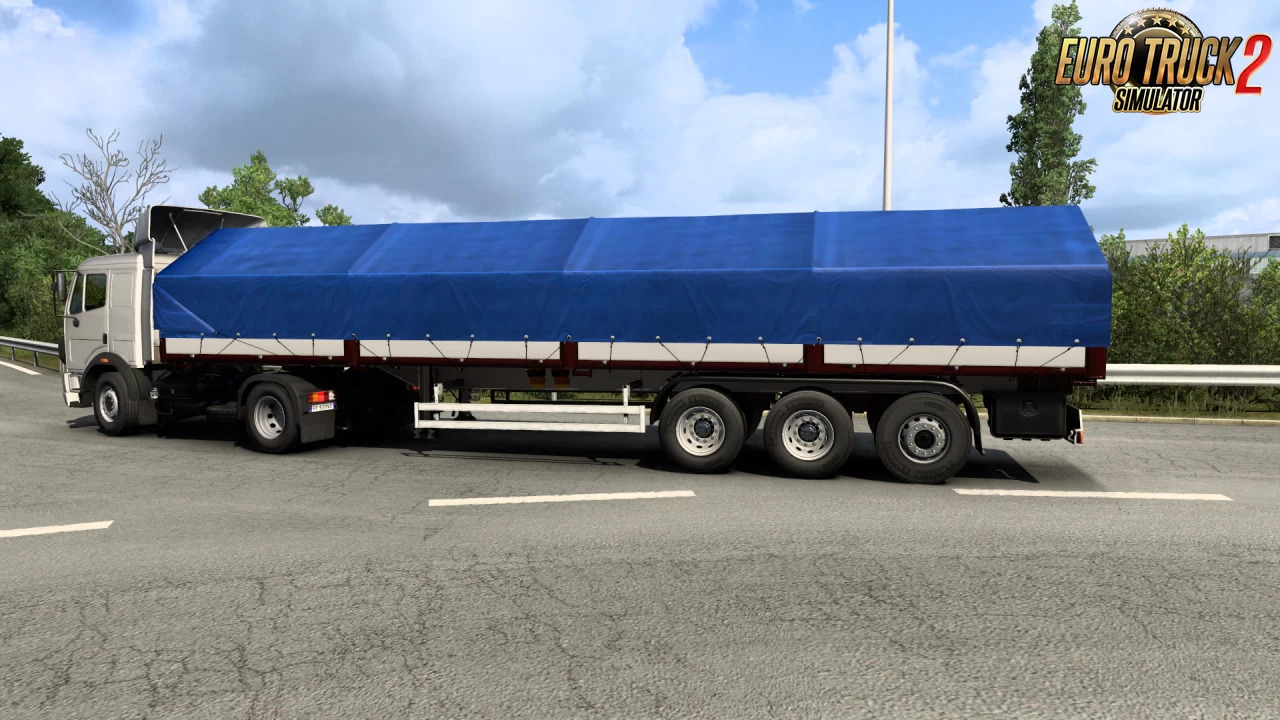 Semitrailers Pack - this modification adds 4 new 12.50 meters Semitrailers for ETS2 players. All the trailers has their own cargo, open for the flabed, and both open and covered with tent for the dropsides and Osb. Osb trailer can also load bulk coal, gravel, ore and sand. Curtainside trailer is skinnable and can only load closed cargo loads, all the other trailers are paintable but not skinnable. Pack Trailers: - Bartoletti Flatbed Semitrailer - Bartoletti Dropsides Semitrailer - Bartoletti OSB Dropsides Semitrailer - Viberti Curtainsides Semitrailer. Changes in v1.1: - Added Single Wheel trailers variants and compatible accessories - Added accessories with no cages - Fixed Collision causing trailer damage - Increased distance between cabin and trailer - Fixed Europoint1 Lightmask - Fixed 10 Wheel trailers tires texture - Fixed painted palletbox reflection Tested on game version 1.41.x Credits: Ralf84, Scaniaman1989, Mixer66, Bal |