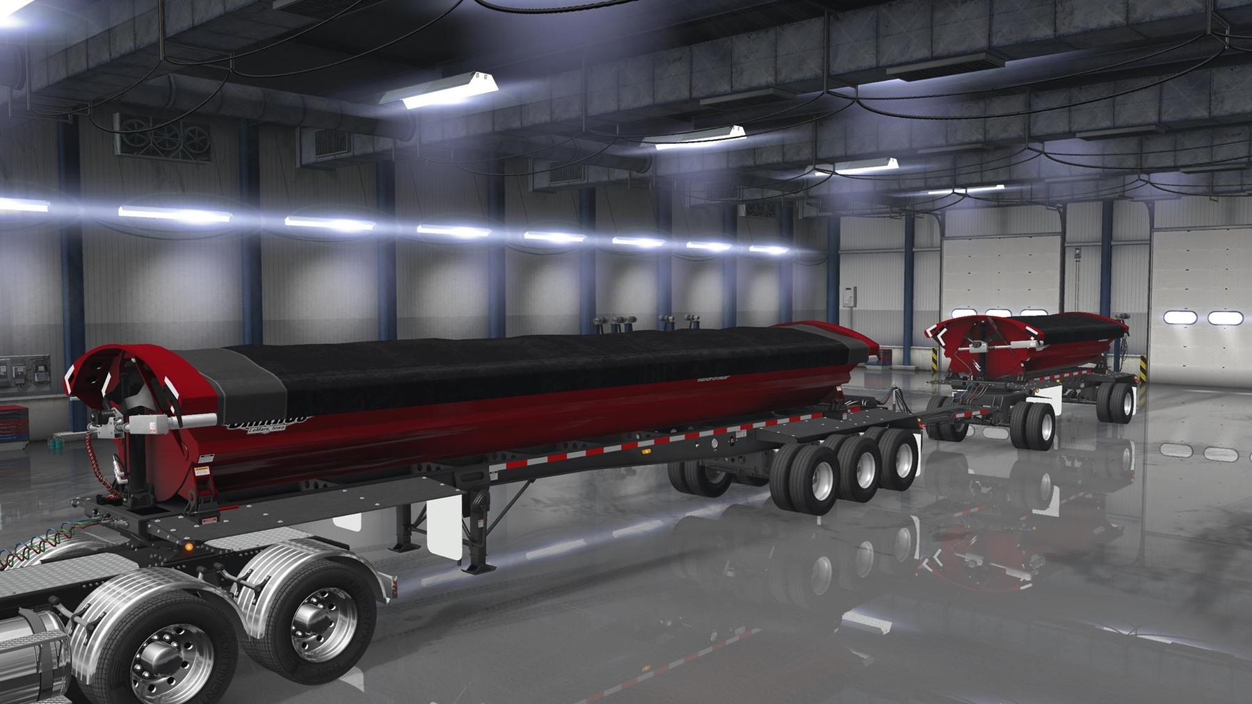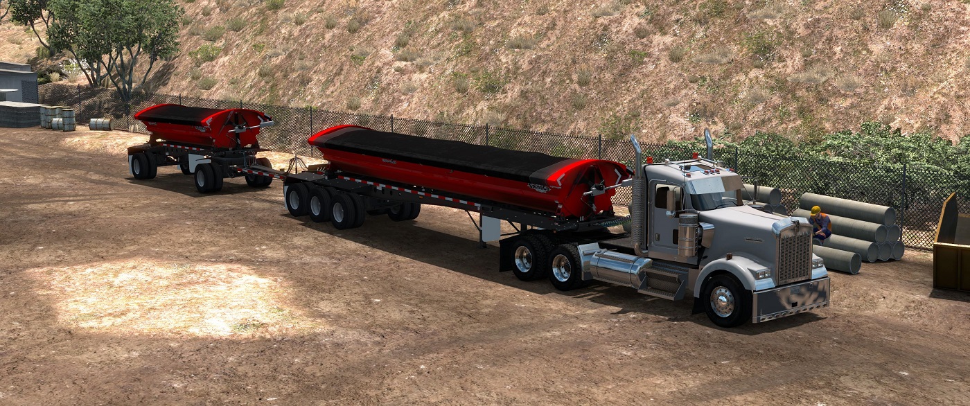 The current ATS dump truck for transporting: soil, sand and gravel with the SmithCo stylish side dump! Registered SmithCo Side Dump Double Trailer in Traffic. Acquired in the property, painted. Present in the orders of companies. Dogebilt's 100% scratch has improved clutch and chassis animations. Complete overhaul of the trailer: -Compatible with ATS 1.36 -New canvas system -New suspension -Different detail - Possible single and rocky mountains of dual configurations - Available version has a painted body Additional notes: -Compatible with Smarty's Wheel Pack. If this mod has a higher priority, the wheels will be replaced with super-singles for an unacceptable trailer. Credits: Stahl (dogebilt), Smarty |