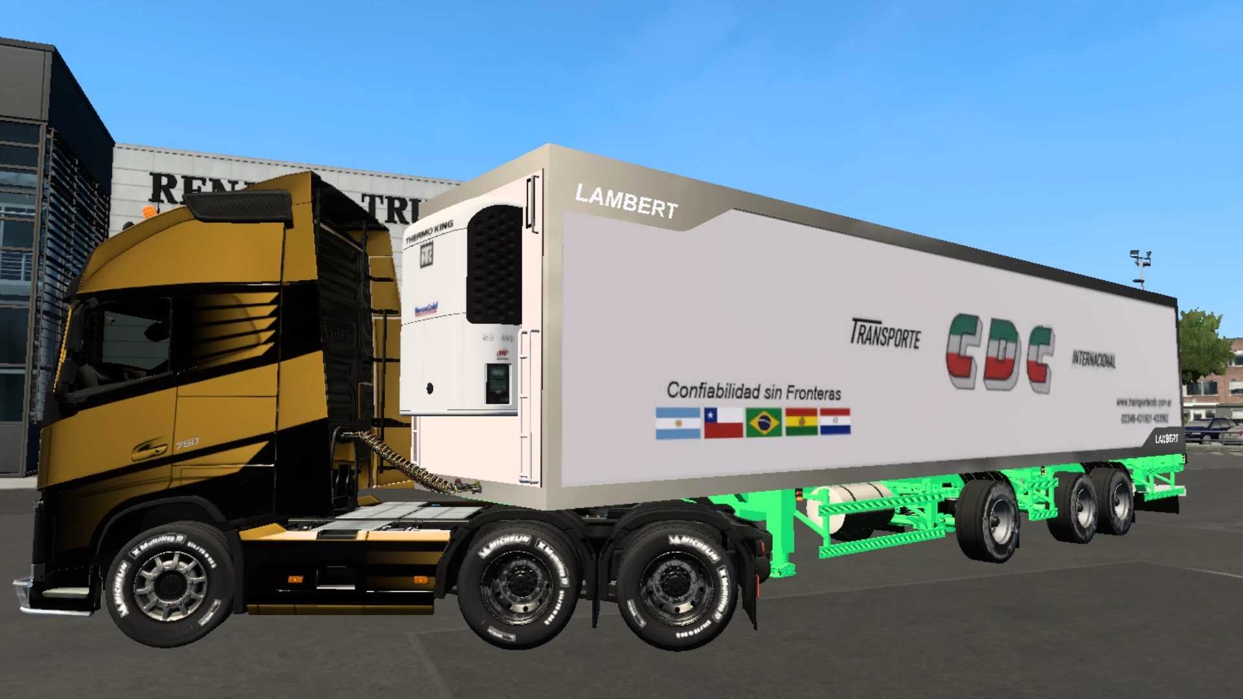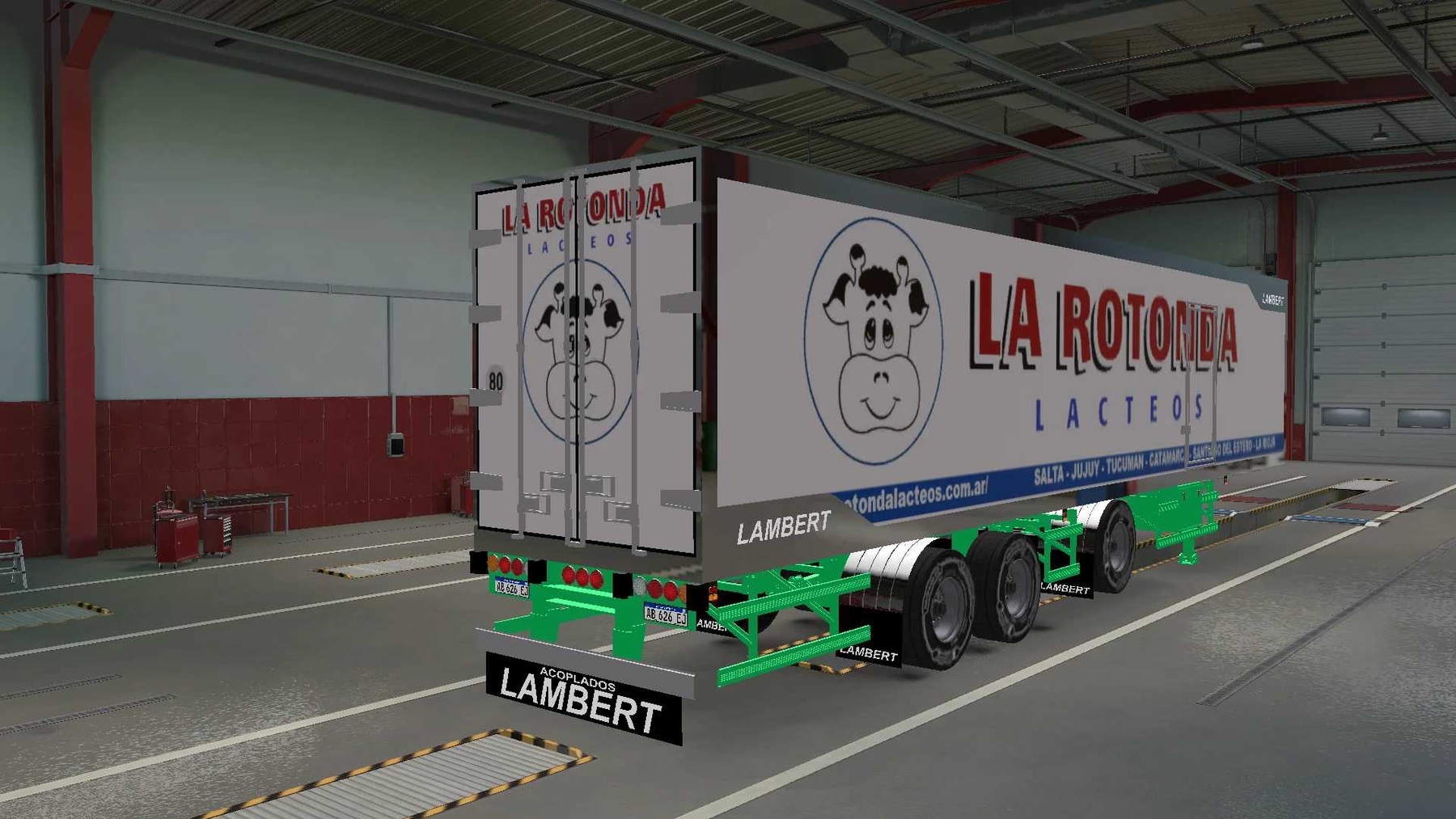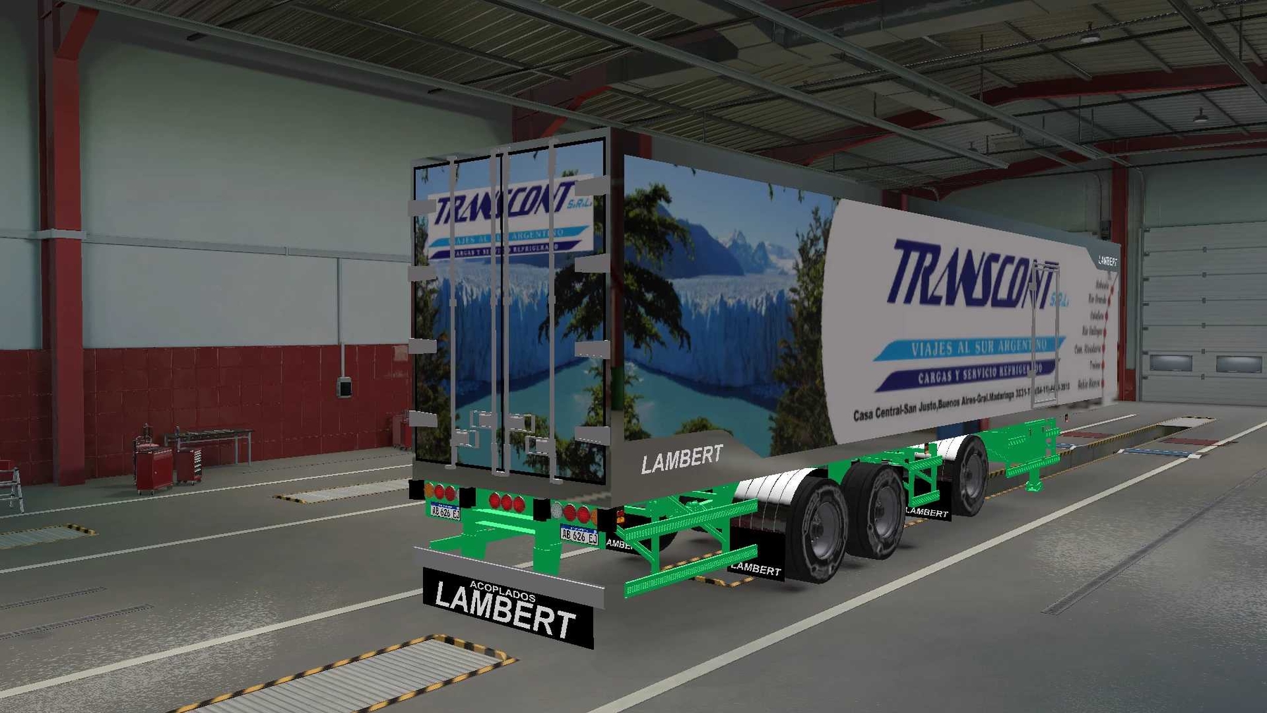 Argentine version of the refrigerator Lambert, on the painted platform and wheel formula 2 + 1 – Standalone – Property – support cables; – Advanced coupling – Loads SCS – tuning, only wheels – 12 of their skins Credits: jp3d (model), Paulo Guzman (Skins) |