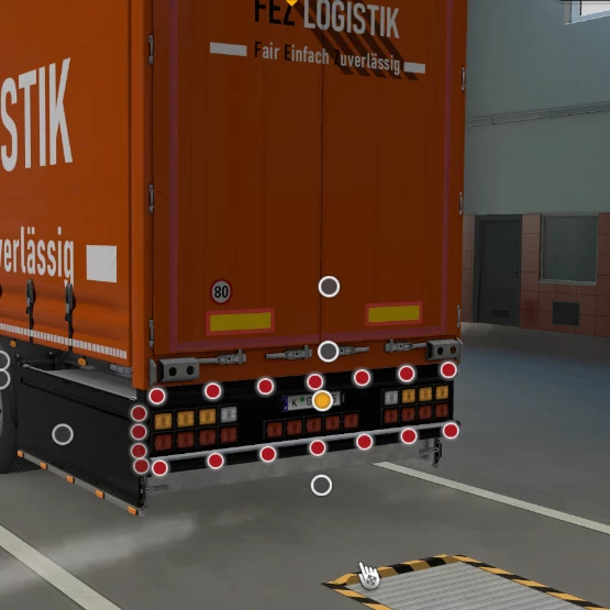 What is in the mod? bumper with more slots, license plate lights, mudflap lights markers with indecators paletbox´s with a lights compatible with SCS Trailer Tuning Pack Credits: 20Uhr |