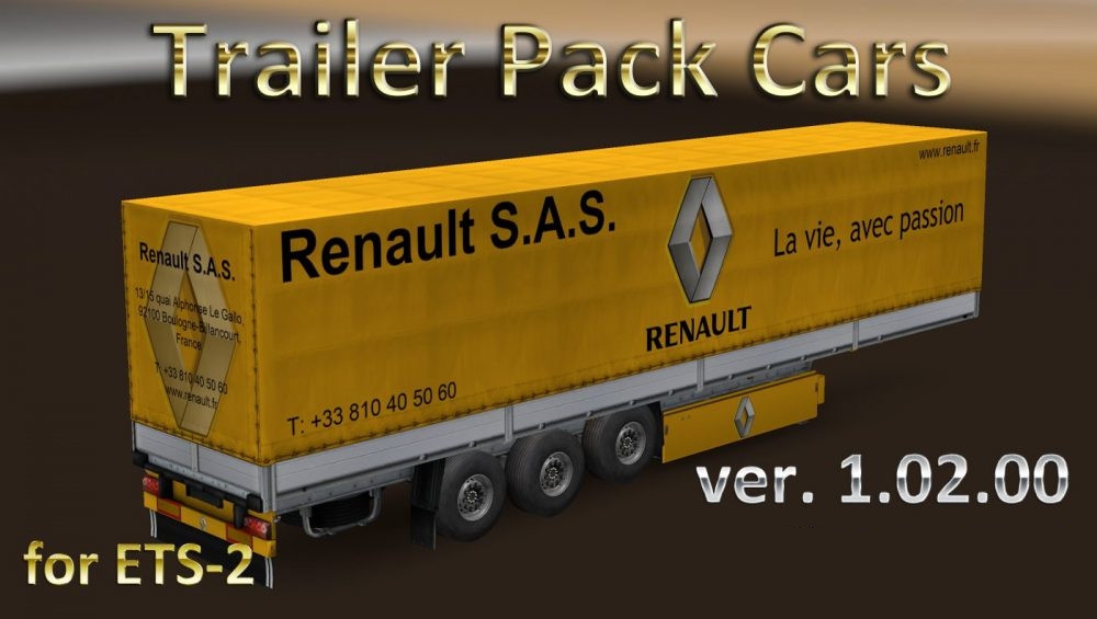Mod of trailers with skins of car brands. In the package 104 company, 11 cargo and 50 skins on 2 trailers (Schmitz Universal and Profiliner): – Alfa Romeo – Aston Martin – Audi – Belaz – Bentley – BMW – Bugatti – Cadillac – Chevrolet – Chrysler – Citroen – Ferrari – Fiat – Ford – Gaz – Honda – Hummer – Hyundai – Infiniti – Izh – Jaguar – Kamaz – Kia – Lada – Lamborghini – Land Rover – Lexus – Lotus – Maserati – Maz – Mazda – Mercedes-Benz – Mitsubishi – Moskvich – Nissan – Opel – Pagani – Peugeot – Porsche – Renault – Rolls-Royce – Scania – Skoda – Subaru – Suzuki – Toyota – Uaz – Volkswagen – Volvo – Zil Changes in version: 1. All trailers have a renewed registration of cargoes in accordance with the profiles of companies and types of cargo. 2. Added companies from DLC “Vive la France!” and DLC “Italia”. 3. Changed the format of the package version. All trailers are autonomous and included in the traffic. For version 1.30 Credits: SCS, Omenman Credits: Omenman |