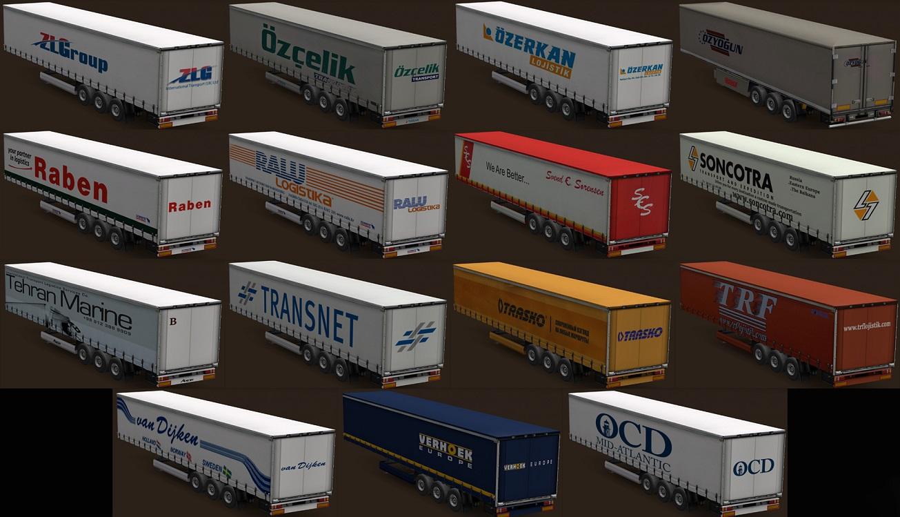 Pack of 30 trailers from different European companies, they work in traffic. thanks Credits: Maryjm, Scs Credits: Maryjm |