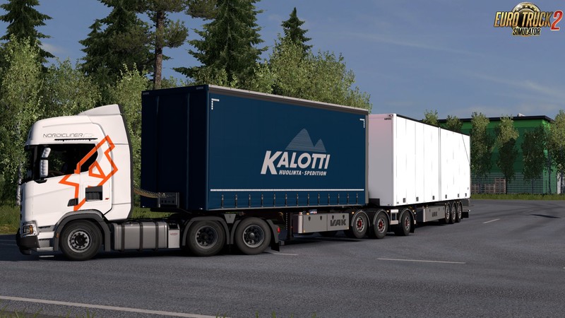 Changes v2.4: - Mod is updated to 1.35.x - Hultsteins cooler added - Converted and updated to game version 1.35.x - Body locator position moved All addons must be redownloaded(changes in every mod) Game version 1.35.x Pack includes: -Ownable trailers -14 variants of the VAK trailers (freightmarket) -Carrier coolers -Real company skins -Double trailers -Standalone -Advanced coupling -Trailer lift axle -Steer axle -Company paintjob system -Animated braces -Trailer cables Kast - Trailers Skins: Fabry85 Ogentor Wheels: Abasstreppas Flares for the LEDs: Abasstreppas (And UI Shadow for the V-Slider) Credits: Kast |