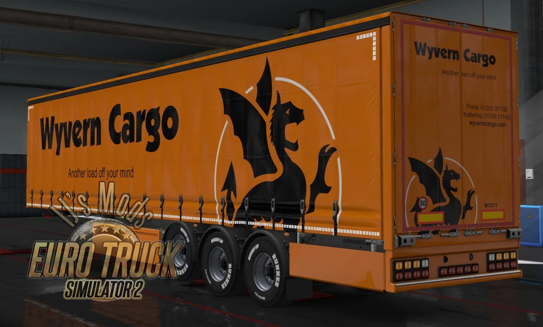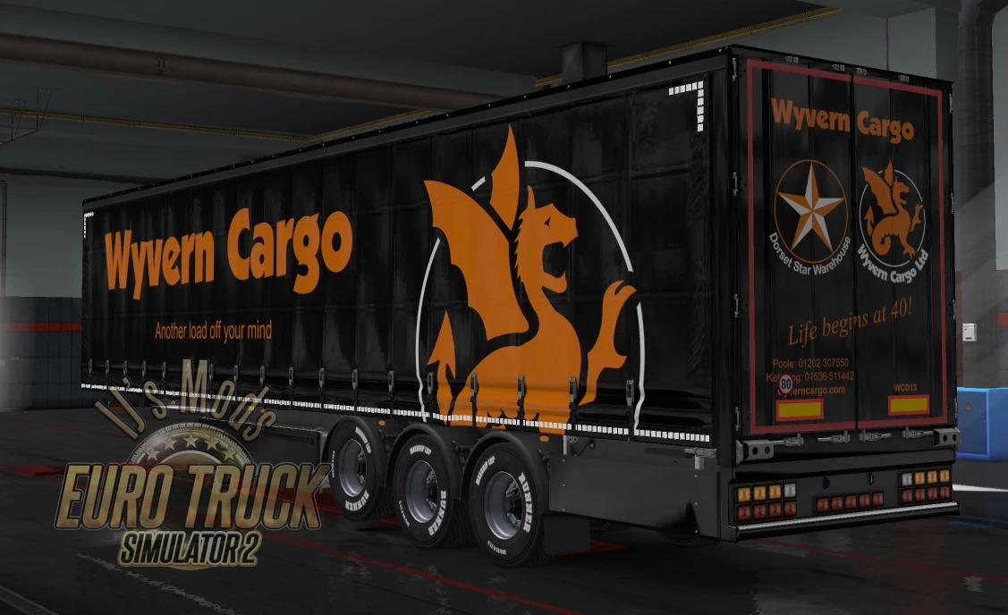 Two Wyvern Cargo replica skins for Scania R Topline (Poole & Kettering). And a skin for Scania S Normal Roof (Wellington). 2 Skins for both freightmarket and Owned Trailers. Standard Wyvern Cargo and 40yrs Special skin. Version 6.2 – update for v1.44 Credits: Mohegan13 Credits: Mohegan13 |
