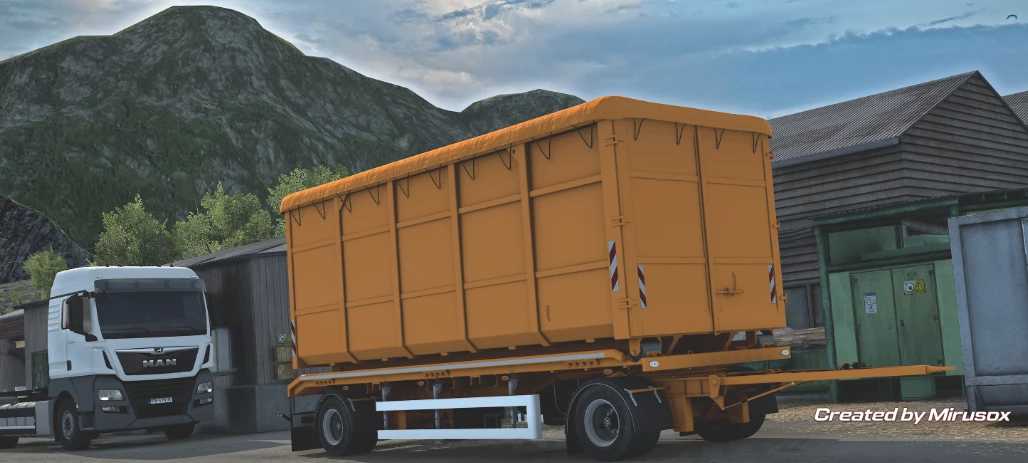 High quality model. (Even if it doesn’t seem like it, it’s a simple trailer.) Modeled according to real technical drawings Tuning accessories 2 chassis options 3 body types Full AO textures HQ templates EU license plate also skinable Trailer cables Clean log Own cargoes And more.Trailer is for game version 1.46 Current trailer version 2.8 Credits Mirusox Credits: Mirusox |