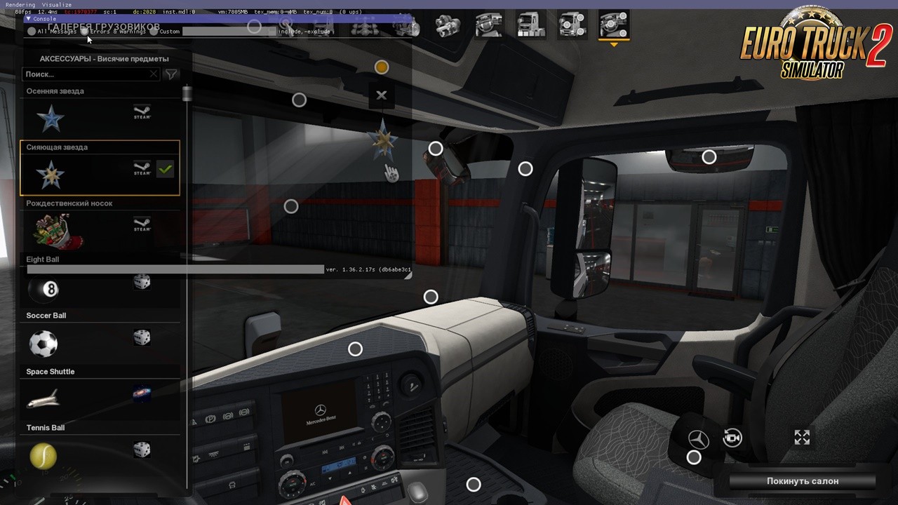 New Changelog: r 1.36.0.beta --> r 1.36.2.17 -adaptation under the patch 1.36.2.17 -added compatibility with Christmas Grand Giving event 2019 -reconfigured adjustments of all truck chassis and trailers under patch 1.36.2 -minor bugs fixed tested on game version 1.36.2.17 Install Help: In the downloaded archive (compiled using 7-Zip v19.00) you will find two files with the extension .scs "D3S Mercedes Antos' 12 r1.36.x.x" - this is the main, base file - required to connect. "D3S Route Advisor Marker 2.0.123" - is an auxiliary and optional file that simply changes the appearance of the cursor on the game map and in the navigator. That is all he does. If you connect it, it must be installed with a higher priority than the set of your mod-maps. Additional folder "Template bodywork and truck" - contains cab coloring templates and decoding of details of .dds files of the truck body and trailers. -Open the downloaded archive. -Copy the base file to the "mod" folder -In the mod manager, delete ALL the old mod files and connect the latest update (remember that the main file is now one). -------------------------------------------------------------- the author of the basic model-DANZ[D3S DESIGN], further development of the mod-dobr4060 Credits: base model – DANZ[D3S DESIGN] |