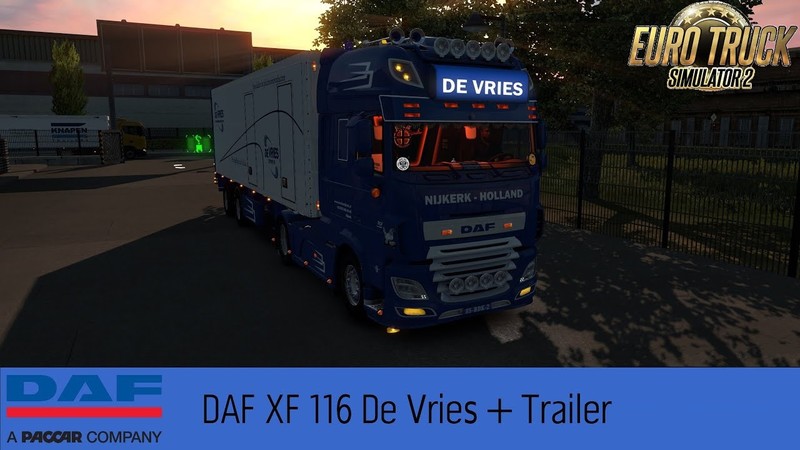 DAF XF 116 DE VRIES + TRAILER Small Fix Fixed dealer shadow. Fixed windshield stickers. Credits: CTV, jon-ruda, COne, Alang7, Alexar |
