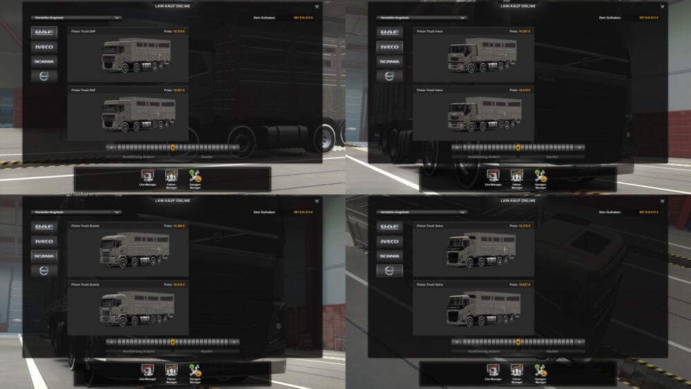8×2 and 10×2 Chassi Pack includes Scania Streamline DAF XF Volvo FH16 2012 Iveco Stralis customizable through a lot of slots customizable mudflap, frontscreen, frontgrill, topgrill, roofgrill, and more compatible with Tandem Trailers from Devil BDF Tandem Truck Pack compatible with some sound mods (for example Volvo Open Pipe from Slav Jerry: Kırkayak ve Elliayak şasileri Scania Streamline DAF XF Volvo FH16 2012 Iveco Stralis Slotlar sayesinde yapılandırma imkanı değiştirebilir paspas, ön cama yazı, ön demir, üst demir ve dahası Devil BDF Tandem Truck Pack modu ile uyumlu bir çok ses modu ile uyumlu Credits: FINION |