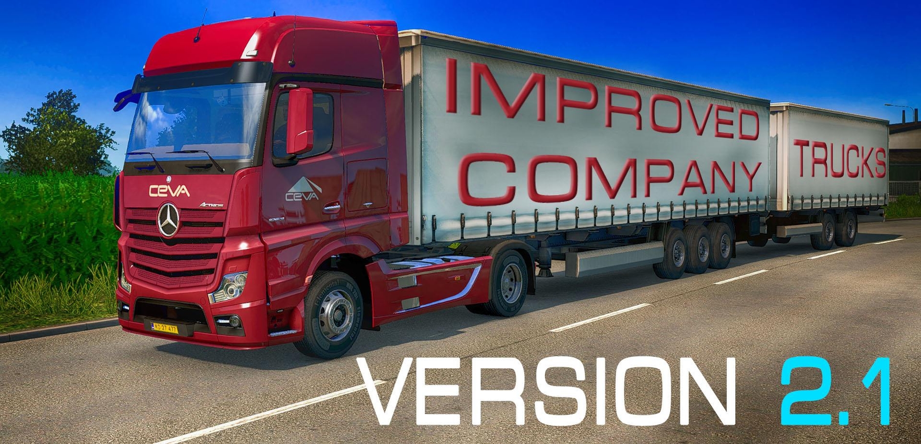 – 1200 variants of trucks (rhd and lhd) for quick jobs to select from; – Every quick job truck now has its own (not always perfect) technical condition; – Almost all possible variants of chassis, cabins, interiors, now used in quick job trucks. More than 90% of default engines are represented; – Mercedes Actros `14, Volvo FH16 20092012 and Iveco StralisHiWay now use new engines from Snoman`s Gearbox/Differential mod. Also, all quick job trucks use real gearbox data from Snoman`s Gearbox/Differential mod (mod is integrated); – Trucks differ by installed accessories: front and bottom grills, wheels, sunshields, headlights, mirrors, doorhandles, sideskirts and doorsteps; – Correct badges, based on enginechassis type; – Reworked truck paint system: trucks will use SCS vanilla skins or custom skins for real logistic companies: A.K. Worthington, CEVA, Freya, Fiege, Kuehne Nagel, Norbert Detressangle, Panalpina, Schenker, Sovtransavto, Dachser, Emons Group, Logwin Logistics, Fercam, Willi Betz and Raben; – 80+ new paint colors for aiquick job trucks and ai cars; – Some trucks now have working interior lights; – All trucks without integrated GPS have standalone GPS navigators; – New loading screens; – Mod is compatible with all map, cargo, trailer, graphic, sound and physics mods; – Trailers will not use fictional company skins (optional); – Harder economy, harder gameplay and slower player level progress; – More traffic on roads and it is more agressive; – Some quick job trucks will now use Michelin DLC tyres; – Some trucks will have cabin accessories; – Some trucks will have dirty windshields; – Some DAF and Scania trucks will have Vabis steering wheels installed. Mod was tested with ETS2 ver. 1.32.x, not tested on previous versions. Credits: AlexeyP, Alang7, Snoman, Rockandrole18, theclumsygeek Credits: AlexeyP, Alang7, Snoman, Rockandrol |