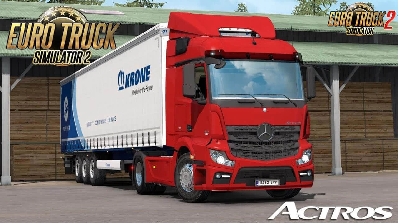 Mercedes-Benz Actros MP4 - Qualitative model of the Mercedes tractor. It was created for early versions of ETS2. This mod is a reworked and improved work of the author ,,galimim". Features Mercedes-Benz Actros MP4: - independent truck model - High quality 3D model - High quality detailed exterior - High quality detailed interior - the model has own interior - the model has own sound - the model has own wheels - the model has passanger seat - the character is correctly sitting in the driver's seat - the choice of engine power - the choice of transmission and gearbox - the choice of wheels configuration - the choice of interiors - choice of color body / metallic paint / skins - correct position of the Mercedes logo - present the illumination of arrow speedometer and tachometer - Working headlights, brake lights, tail lights, front and rear turn signals, steering wheel and reverse signals - working lights - The correct position of the player - There are external tuning - Cabin Accessories support - Supports all major functions of the game - buy in Mercedes or Acces Mod dealer Changes in v1.6: - Adapted to the latest game patch 1.43 3D Model: jekich1, SCS Envelope in the game: Stas556 Sound: Kriechbaum Add. Accessories: Fire-Blade Technical Support: Gerald Hardie Development, template: Robert Bogdanov Interior: SCS Registration: Mishanka Update ByYurtkuran, galimim Credits: jekich1 |