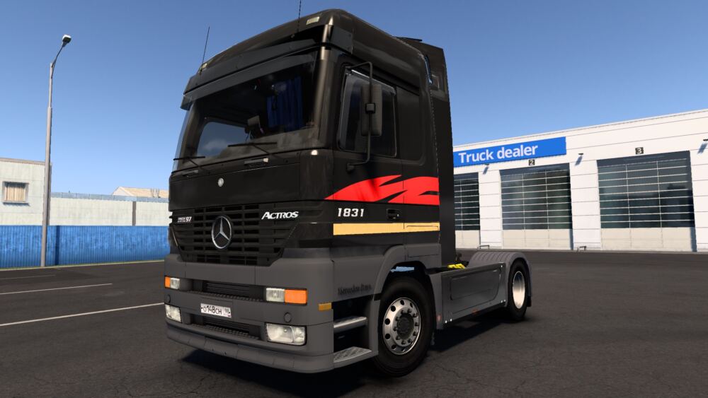 Description: Autonomous, does not replace anything, bought from Mercedes. Your own salon. There is support for steering wheel settings – these are positions up and down, forward and backward. It has 3 wiper modes. Rich in its not great tuning. Each engine has its own nameplate. 6 chassis and 1 cab. There are accessories in the cockpit and toys from STEAM. Has a personal, calibrated camera. Last change: Fully converted model for new versions. (SCS Blender Tools). Fully optimized model, all errors and crashes removed. Multiplayer mode enabled. Fixed the display of side mirrors. Dashboard has been fixed. Fixed work of on-board computer and GPS navigation. Engines have 2 modes – 1) without fan sound (No Fan) and 2) with fan sound (Fan). Gearshift sounds present. Aesthetically improved appearance of the truck. The window tinting has been reduced to a minimum. The diameter of the steering column has been increased to standard. (as in life) Optimized FPS in the interior. Improved and optimized physics of all truck chassis. Updated in dealer, company and truck gallery. The game log is now 100% (percent) clean. Test on ETS2 version: 1.46.2.13s Credits: Author: SOLARIS36. Conversion author: @Master_Yoda@. Improvements and bug fixes: @Master_Yoda@. Credits: @Master_Yoda@ |
