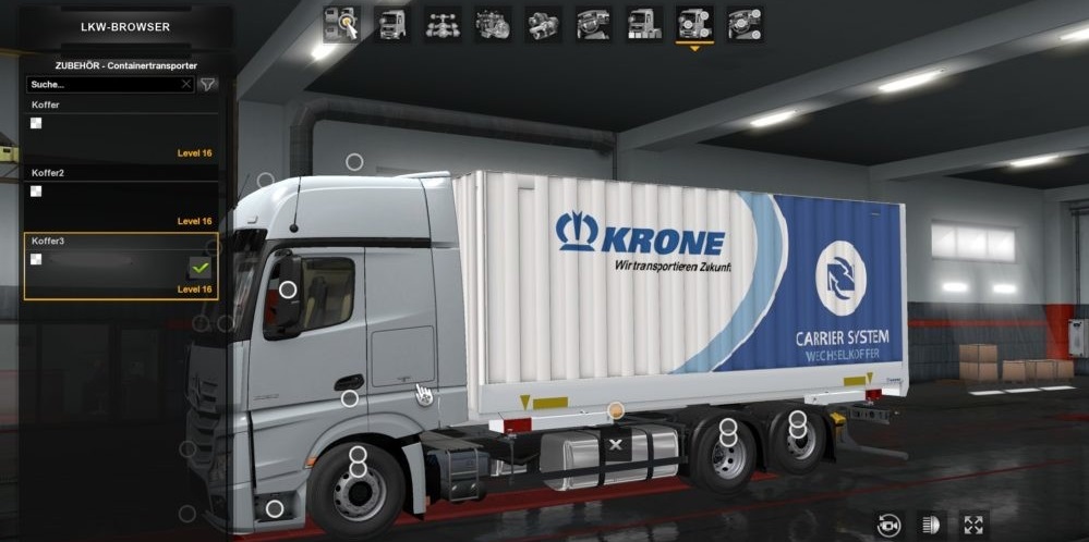 2 new chassis 1x double axle rear without lift funkion 1x Double axis at the back with a wheank-guided axis as well as lift axle 3 suitcase available 2 suitcases for the lift chassi 1 case for the stiffened chassi 3 Standard cabins selectable mp4 tuning mods should also run with it I wish you lots of fun with it I hope you like it Credits: SCS.XBS.ZIPI Credits: XBS , ZIPI |