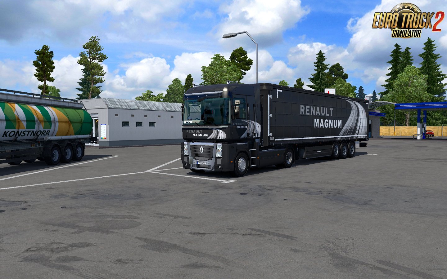 Changes in 18.02 version - Adaptation for 1.30.x game version - Improvements of the model and textures - Bugfixes and corrections Install Put the file magnum_updates_v18.02_by_knox_xss.zip into your \mod\ folder. For tandems(optional) Put the file magnum_updates_v18.xx_bdf.zip from "BDF" folder into your \mod\ folder. For American Truck Simulator Put all files from "For American Truck Simulator" folder into your \mod\ folder. Helpful information * If after beacon name there is a "Low beam" sign, then this beacon turned on with low beam. * For connoisseurs of realism was added 1800 degree steering wheel in interior animation. You can uncomment it in files def\vehicle\truck\renault.magnum\interior\animations*.sui. *I express my gratitude to Renault Trucks, SCS Software, Simon (50keda), Dmitry (dmitry68), Vyacheslav_A, Oleg (oq37), Denis (DANZ), Sergey (Supric), Flemming (Flemming V), David (Davidzoli), Enrique (SheryO), kuba141 and many other fans of Renault Magnum, serves a variety of ideas and carrying a healthy criticism. Credits: Knox_xxs |