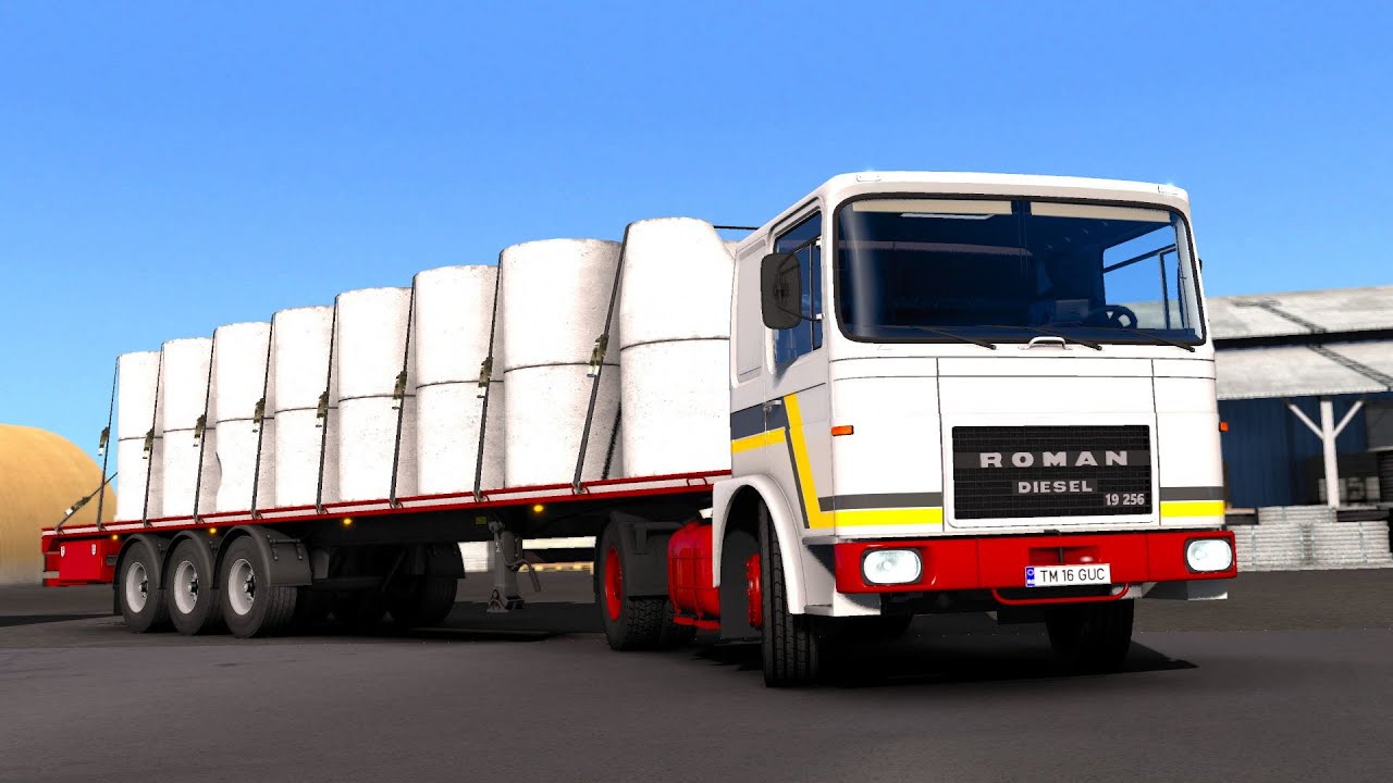 ROMAN Diesel - high quality romanian truck 3D model added for ETS2 players. The mod of the Roman Diesel truck tractor for ETS2 has a chassis with wheel formulas 4x2 and 6x4, several engines from 192 to 256 horsepower and three gearboxes at 5, 6 and 12 stages. The authors of the modification added skins and prescribed characteristic sound effects. Features ROMAN Diesel: - independent truck model - High quality 3D model - High quality detailed exterior - High quality detailed interior - High quality rims & 3D tires - High quality mirrors reflection - Correct plate license position - the model has own wheels - the model has own sound - the model has own interior - passanger seat - present the illumination of arrow speedometer and tachometer - the character is correctly sitting in the driver's seat cabin - the choice of wheels configuration - the choice of color body / metallic paint / skins - the choice of transmission, gearbox - the choice of power engine (D2156 HMU / D2156 HMN8 / D2156 HMN8 with turbo) - the choice of chassis (4x2 or 6x4) - correct position of the Roman logo - Working headlights, brake lights, tail lights, front and rear turn signals, steering wheel and reverse signals; - The correct position of the player - interior accesories configuration - There are external tuning - Supports all major functions of the game - buy from Acces Mod dealer - recommended trailer: Automecanica Medias Reefer Changes in v1.3: - adapted to the latest game patch 1.40; - new powerful engines from Man F8; - various fixes and improvements; - adapted with the new light system (not full, but playable). MADster, CobraBlue6, SCS Software, Giants Software, JamesKirk, Roadie66, PikPikker Credits: JamesKirk, Roadie66, PikPikker |