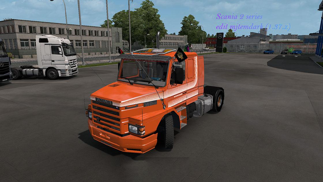 Scania 2 series(112,142) E, HW Includes chassis [4×2 (normal, lowered), 6×2 (normal, lowered), 6×4 (normal, lowered, high [E]), 6×6 (high [E]), 8×4 Normal cabin and topline Motors 360-450 Transmissions (8,9,12,10,16 speeds) Independent interior (white, black, gray, wooden) independent sound and V8 sound Steering Wheels (series 2 and 3 series) (white, black) Miscellaneous accessories (tanks, exhausts, fender, oversize kit [E], etc.) Tires and Rims for scania New Changes: -Reconverted for 1.37.x(beta) -Add windows inside and outside animations Notes: -Not works on previous versions -Truck have an external window accesories, this overlap the original windows, due to a actual game limitations, this model isn’t animated, Recomend remove this accesory for see the animated windows. -Also it has window stickers, these have the same problem for the moment. I recomend remove that. -I tried to find a solution, I will updated if the game in final version has changes in this feature. Credits: Original model Alam Ferreira , Alves Ferreira, Wagner, Tonho; Previous arrangements: Matias Juan Laghezza, Tires: Ventyres, 5-point rims: Lexan, 112 sound: tincho, Towers and 8×4 kit: RJL, V8 sound: Bennekeben; Edition and arrangements: mjtemdark Credits: mjtemdark |