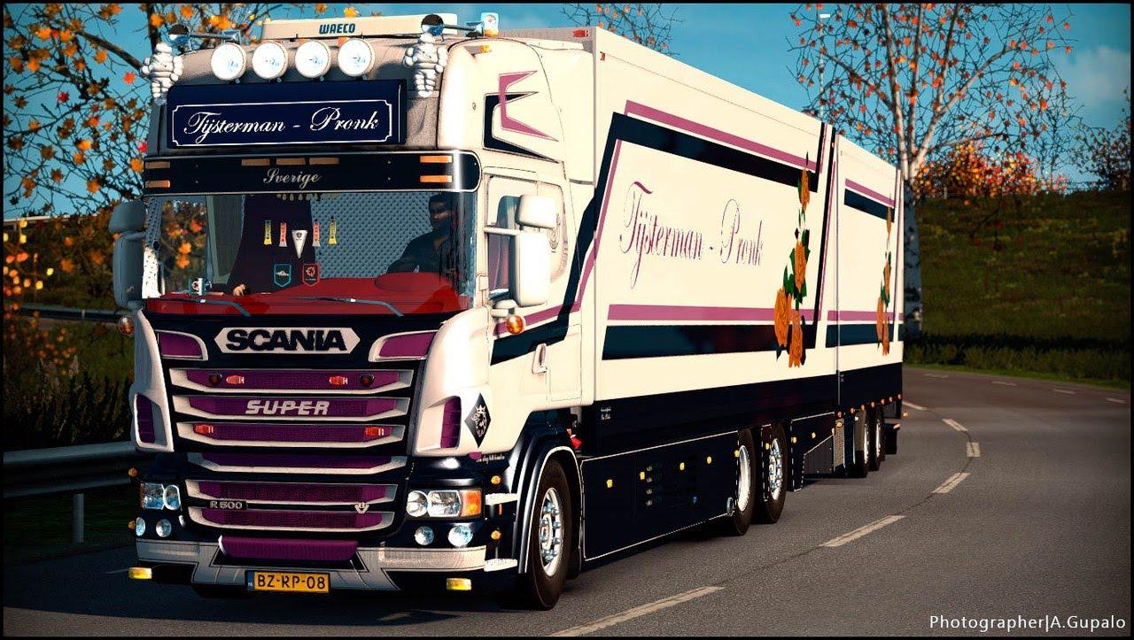 SCANIA R500 TIJSTERMAN TRUCK - TANDEM Scania R500 Tijsterman-Pronk + Trailer + DLS Interior V8 + Sound Sold in the cabin Scania The trailer is registered instead of cargo.