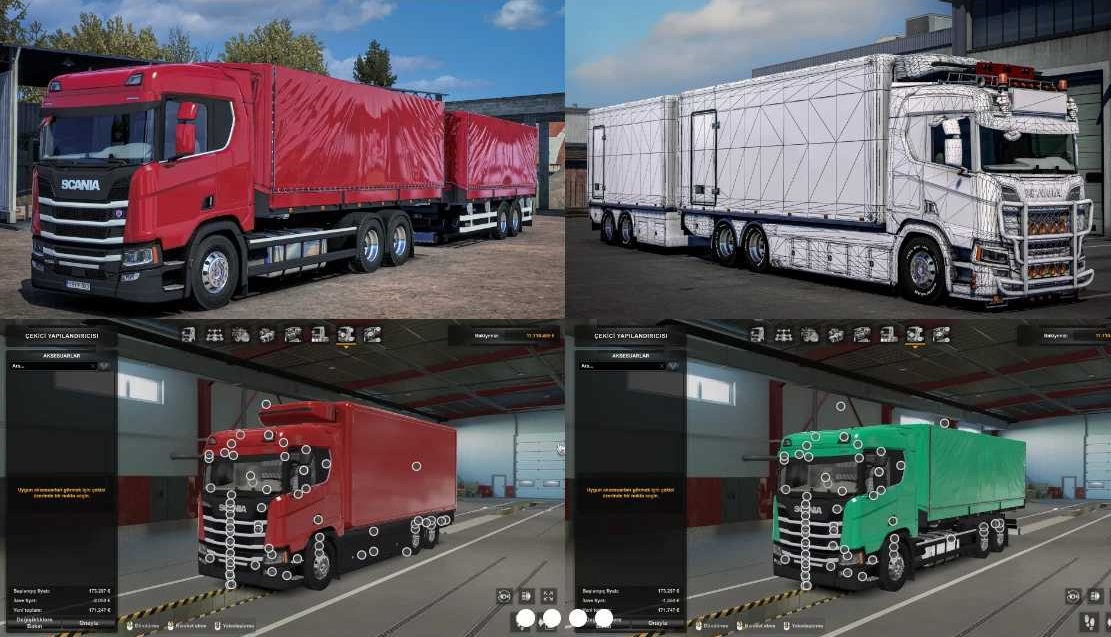 V8 or Stock Customization is Available according to request. Plenty of Accessory Options For Every Model. HQ Low Poly Model HQ Low Poly İnterior 4K Texture Detailed Model Realistic Flare System Cabin Light(5-6 Color) 1 Cabin 2 Chassis Sound Real Pure V8 Sound Real Sound 6 Interior 2 Trailer 6 Wheel 85 Options-300 Sloth Templates of all parts are available. Credits: Gaming Modding |