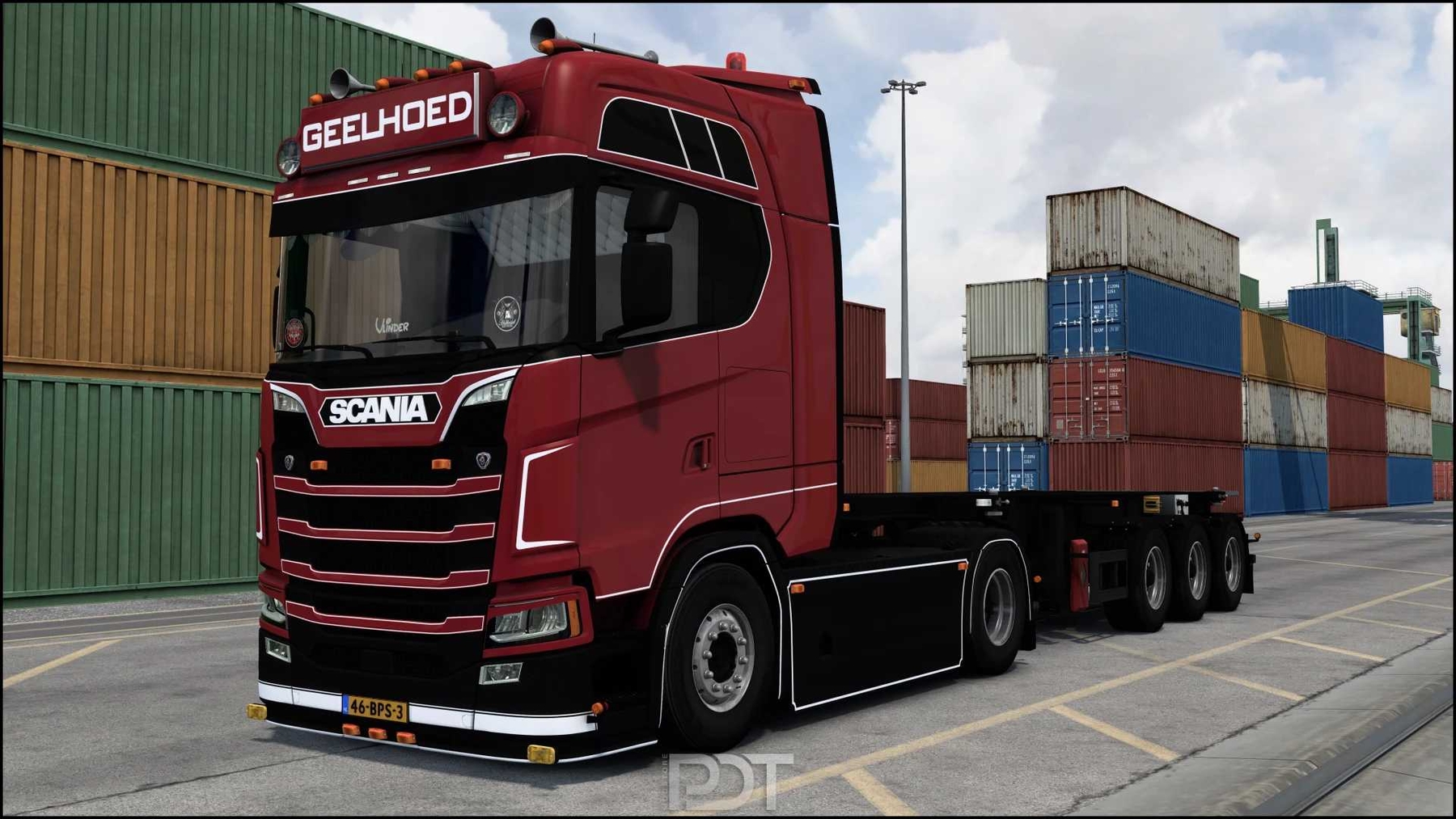 Scania S450 + Trailer “Geelhoed” Version game – 1.47 Include: Truck is adapted for version 1.47 Full Standalone Full Lightmask Full animation RED interior light as accessory Support SiSL’s Mega Pack Personal wheels Has interior tuning Credits: PDT, UMT |