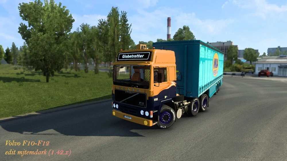 Volvo F10-F12 edit mjtemdark 1.42.x ETS2 Volvo F10-F12 (1977-1987) Includes: -Low cab and Globetrotter -4×2,6×2 short[midlift,taglift, taglift single], 6×2 long(taglift taglift single), 6×4 short and long, 8×4 oversize. -Independent Interiors and accesories -Some accesories -Independent Sound Changes: -Make front mudflaps removable -Add painted and chrome variant to front bumper -Rear axles adjusted (improve stability) Notes: -Update to 1.42 -Front bumper accesory will dissapear so you need to buy the accesory again -Not work in previous versions (important!, wheel anim removed due update) -Contain DLC toys and DLC flags activation mods -Contain skins templates Stas556, Chris, Gandorin, Ventyres, Mjtemdark Credits: Stas556, Chris, Gandorin, Ventyres |