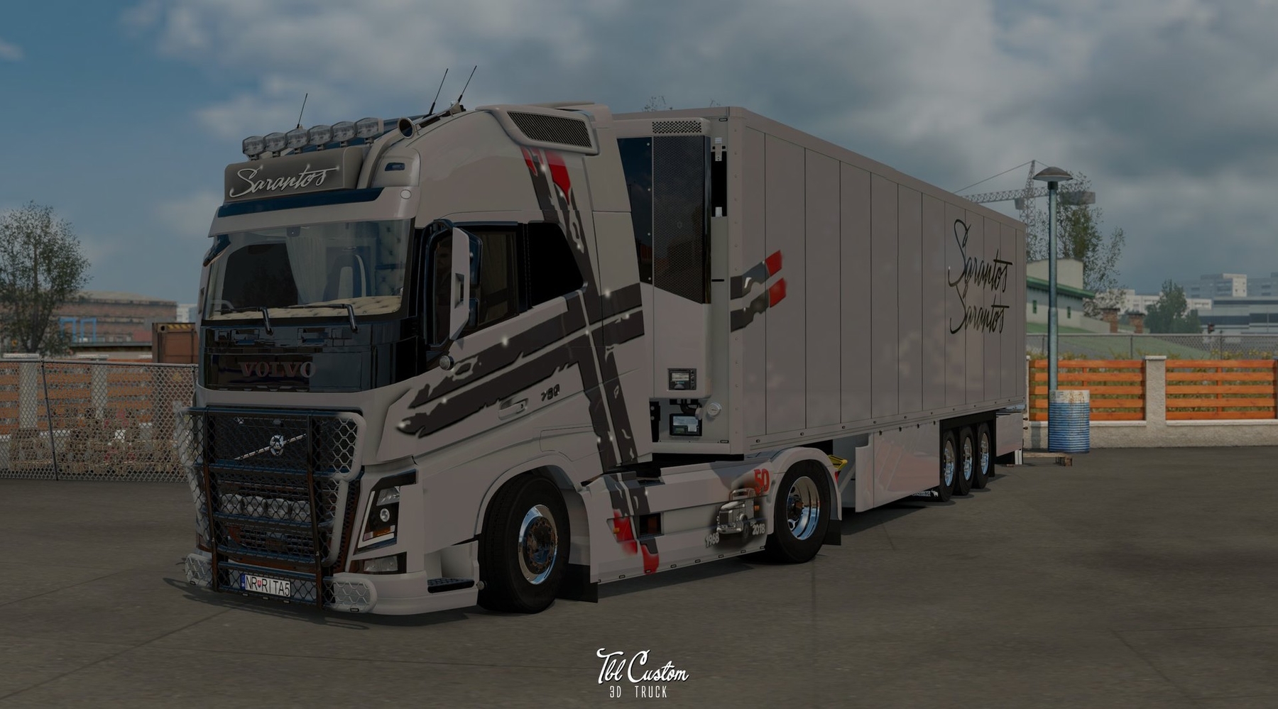 Mod VOLVO SARANTOS PERFORMANCE EDITION [1.35.X] for EURO TRUCK SIMULATOR 2 - Truck and trailer Autonomous; - Voice GPS; - Unique trailer model; - low Poly, but of excellent quality; - Baked textures on the entire model; - Full light mask; - Red interior light; - Custom interior; - Trailer bought in the property. Credits: TbL 3d Truck Custom |