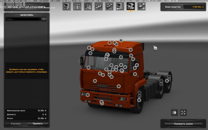 KAMAZ 54118 REWORKED 1.28 - Standalone truck - Dealer Volvo - Interior - More tuning - 5 Cabin - Sounds - Wheels - And more other options Tested 1.28 beta